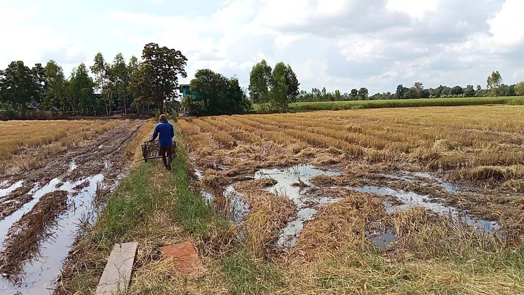 โดยที่แปลงนาข้าวของเพื่อนบ้าน บางรายที่ถือเป็นเจ้าแรกๆของหมู่บ้าน ที่ปลูกข้าวหอมมลิ กข 15 และข้าวสุกเหลืองได้ที่ ได้มีการว่างจ้างรถเกี่ยวมาทำการเกี่ยวข้าว ซึ่งนอกจากทางเจ้าของนาจะทำการขนเอาข้าวเปลือกที่ได้จากการเกี่ยวแล้ว ยังมีเพื่อนบ้านหลายราย ที่ส่วนใหญ่ล้วนเป็นเครือญาติกัน และได้มีการเลี้ยงวัวเฉลี่ยไม่ต่ำกว่า 5 - 10 ตัวต่อครัวเรือนๆ ได้นำทั้งรถอีแต๋น รถไถนาแบบเดินตาม รถเข็นลากจูง และรถจักรยานยนต์แบบพ่วงข้าง มาขอแบ่งเอาฟางสดๆขนบรรทุกเอาไปเป็นอาหารให้วัวกิน ซึ่งเพื่อนบ้านที่มาขนเอาฟางไปให้วัว ต่างพูดเป็นเสียงเดียวกันว่า เบาแรงได้เยอะ เพราะไม่ต้องไปหาเกี่ยวหญ้ามาให้เป็นอาหารวัวเหมือนกับทุกวัน