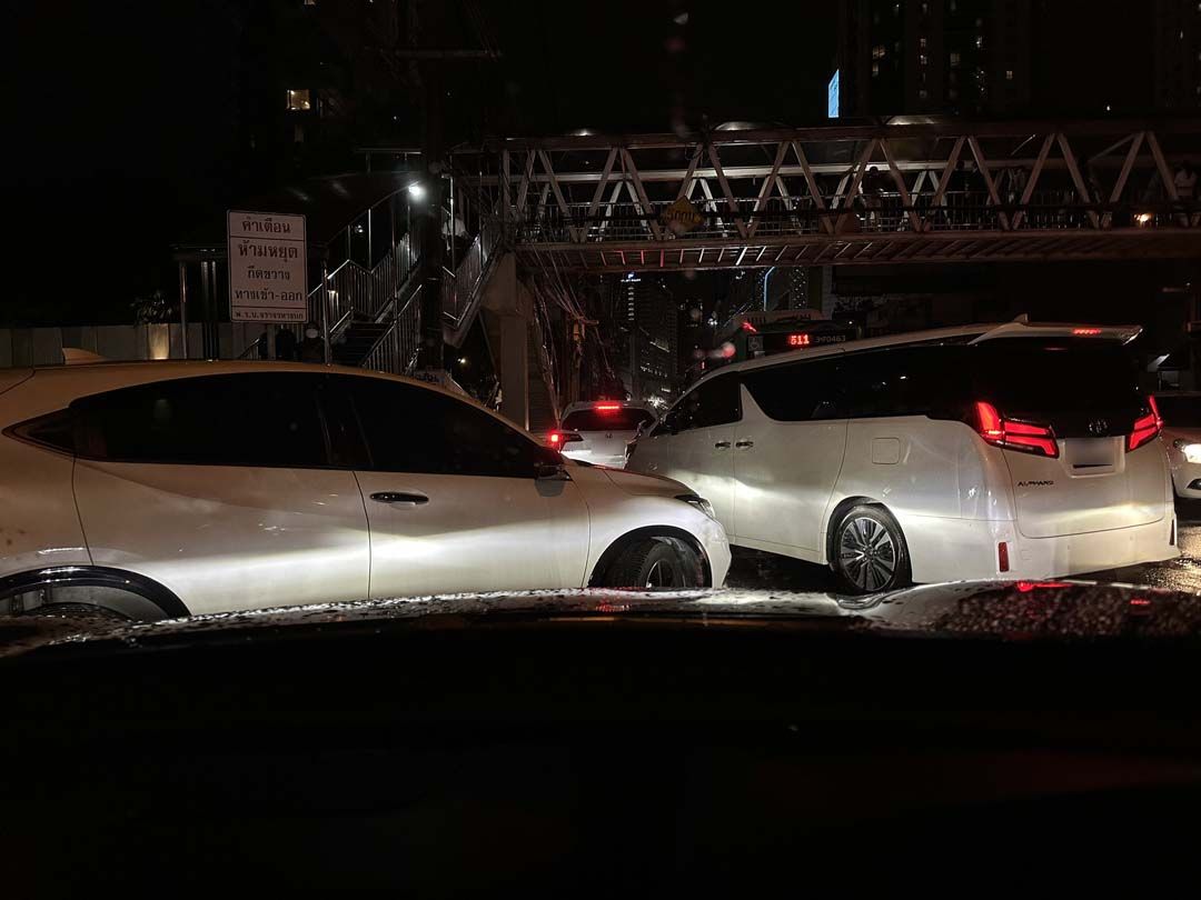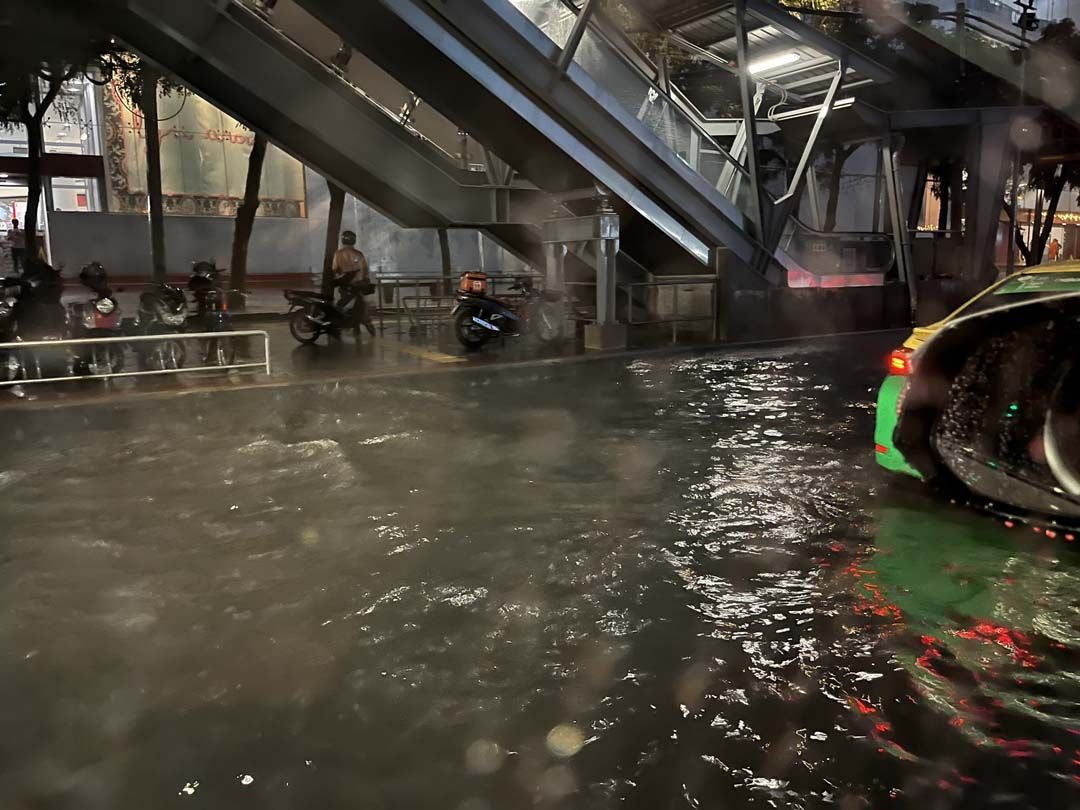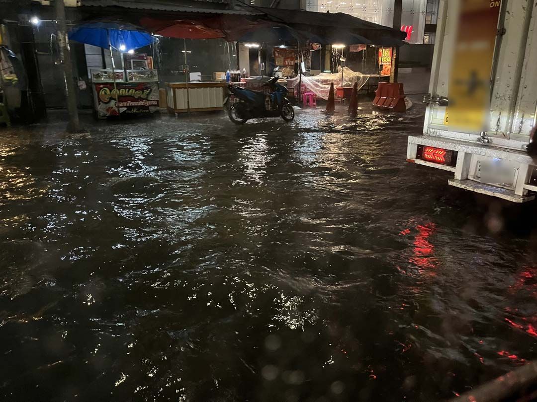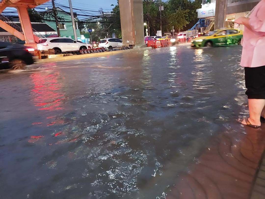 ทั้งนี้ ทวิตเตอร์ JS100 Radio รายงานว่า ถนนสายหลักในหลายพื้นที่เกิดน้ำท่วมขัง บางจุดถึงขนาดรถเล็กไม่สามารถผ่านไปได้ ส่งผลให้สภาพการจราจรติดขัดอย่างหนัก อาทิ เขตปทุมวัน บางรัก และรถติดยาวต่อเนื่องบนทางด่วน ช่วงขาขึ้นจาก หัวลำโพง แจ้งวัฒนะ พระราม9 , แยกมิตรสัมพันธ์ เข้าซอยนานาติดทะลุแยกแล้ว ,หน้าเมเจอร์รัชโยธิน มุ่งหน้าแยกเกษตร,ทางด่วนขั้น 2 มุ่งหน้าดาวคะนอง ท้ายแถวลงถนนจันทน์ รถหนาแน่น,แยกราชประสงค์ มุ่งหน้าไปประตูน้ำ, ถนนเพชรบุรี มุ่งหน้าแยกประตูน้ำ ติดสนิทเกือบ 1 ชั่วโมง, ดินแดงมุ่งหน้า พระราม 9 ขาออกรถติด ฝนตกหนัก,หน้าเดอะมอลงามวงศ์วาน หนักไม่แผ่วเลย , ถนนปั้น มุ่งหน้าสาทรเหนือ นิ่งสนิทตั้งแต่ 17:20 น.,