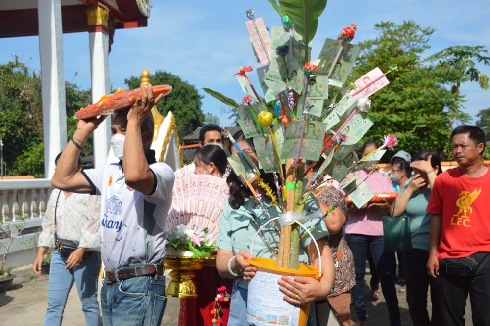 คุณแม่ผ่องศรี เจ้าของกิจการปลาทู ตลาด 3 พร้อมญาติ-พี่น้อง-เพื่อนพ้อง แห่กฐินถวาย “วัดคุ้งวารี อุตรดิตถ์ “ ร่วมบุญสร้างศาลาการเปรียญทรงไทย (หลังใหม่) ก่อสร้างแล้วกว่า 30% ยังขาดปัจจัยอีก 4 ล้าน เพื่อใช้ในกิจกรรมของสงฆ์ แทนหลังเก่าอายุเกือบ 100 ปี