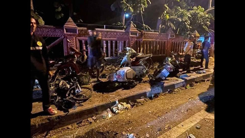 กระบะเมาซิ่ง เสียหลักชน เจ้าหน้าที่ ช.ร.บ. ประชาชนริมถนน ดับ 8 เจ็บ 6 ราย รถยนต์ รถจักรยานยนต์ พังกว่า 15 คัน