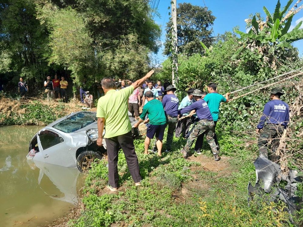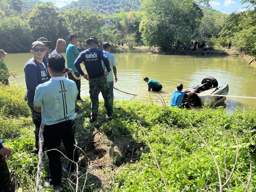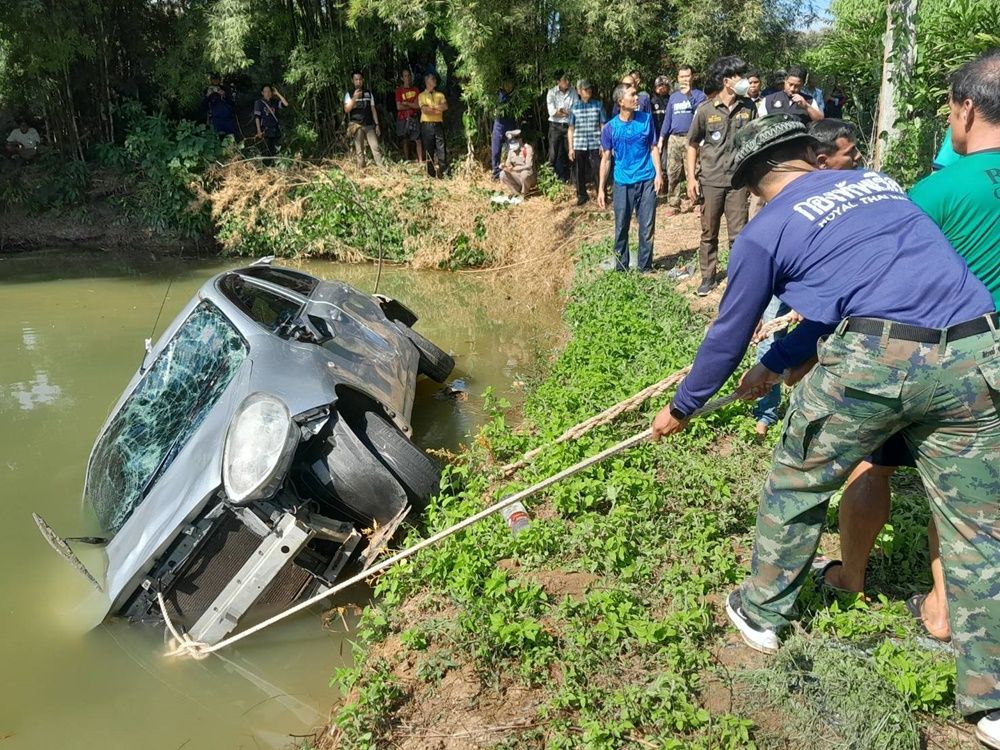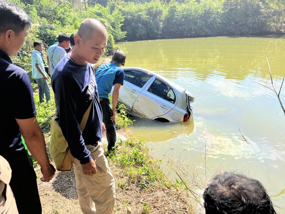 สาวหนองคาย ผู้จัดการปั๊มน้ำมันรีบขับรถนำเงินไปฝากธนาคารเสียหลักตกถนนลงสระน้ำชาวบ้านเสียชีวิต