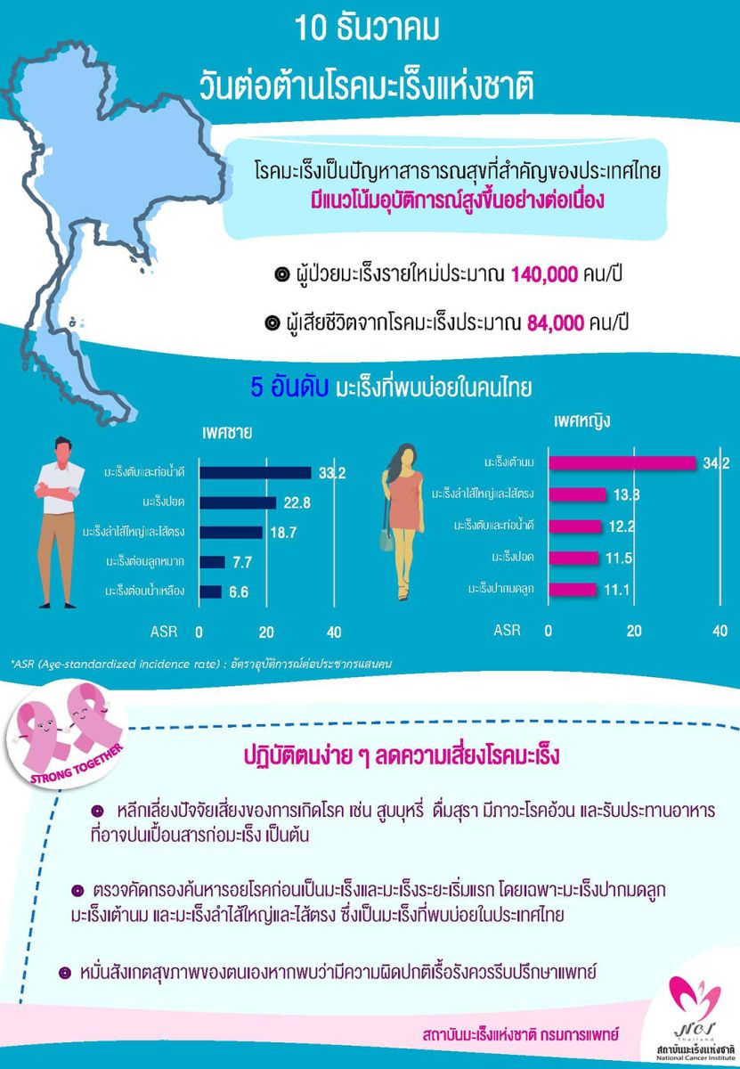 โรคมะเร็งถือเป็นปัญหาสาธารณสุขที่สำคัญของประเทศไทยและมีแนวโน้มอัตราการเกิดโรคสูงขึ้นอย่างต่อเนื่อง เนื่องใน “วันต่อต้านโรคมะเร็งแห่งชาติ” สถาบันมะเร็งแห่งชาติ ขอเชิญชวนชาวไทยตระหนักถึงภัยร้ายของโรคมะเร็ง