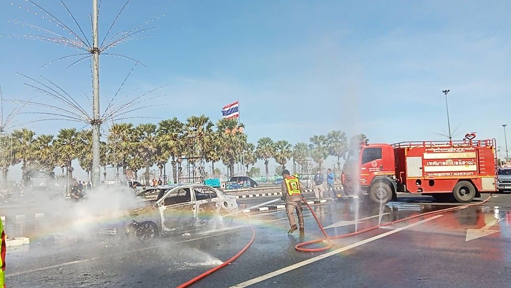 จากการตรวจสอบเบื้องต้นพบว่ารถเก๋งคันดังกล่าวเป็นรถน้ำมันไม่ได้ติดแก๊ส จึงสันนิษฐานว่าอาจจะเกิดจากระบบสายไฟช็อต อย่างไรก็ตาม ต้องรถให้เจ้าหน้าที่พิสูจน์หลักฐานตรวจหาสาเหตุอย่างละเอียดอีกครั้ง - 003