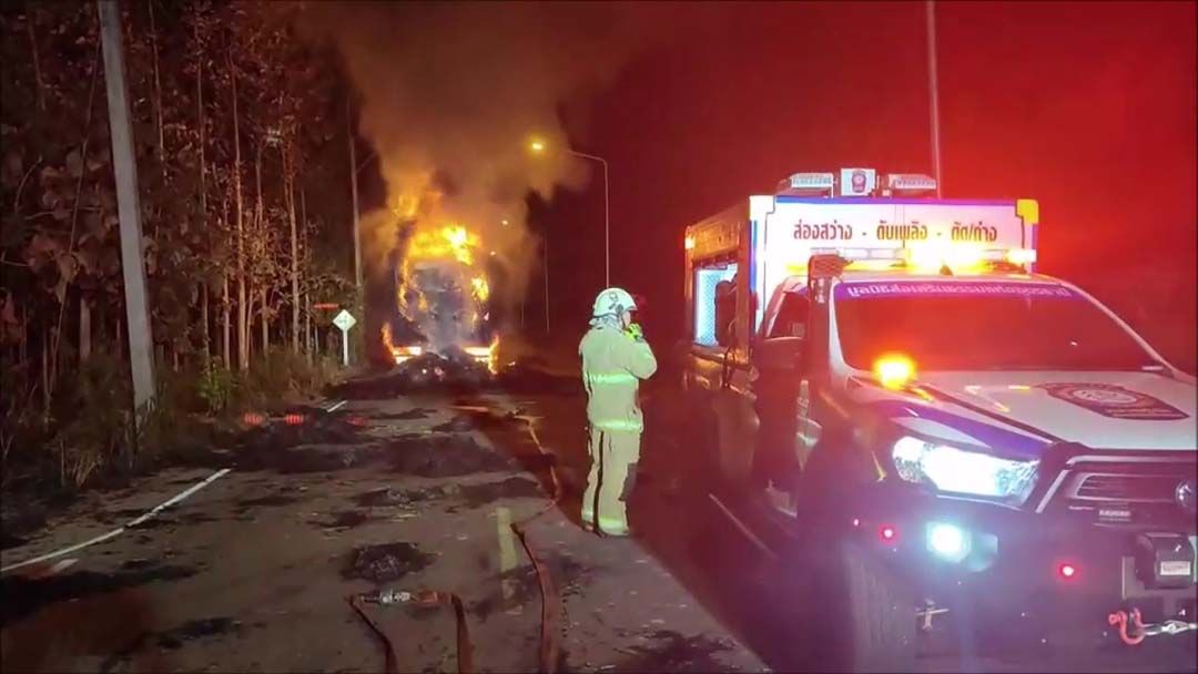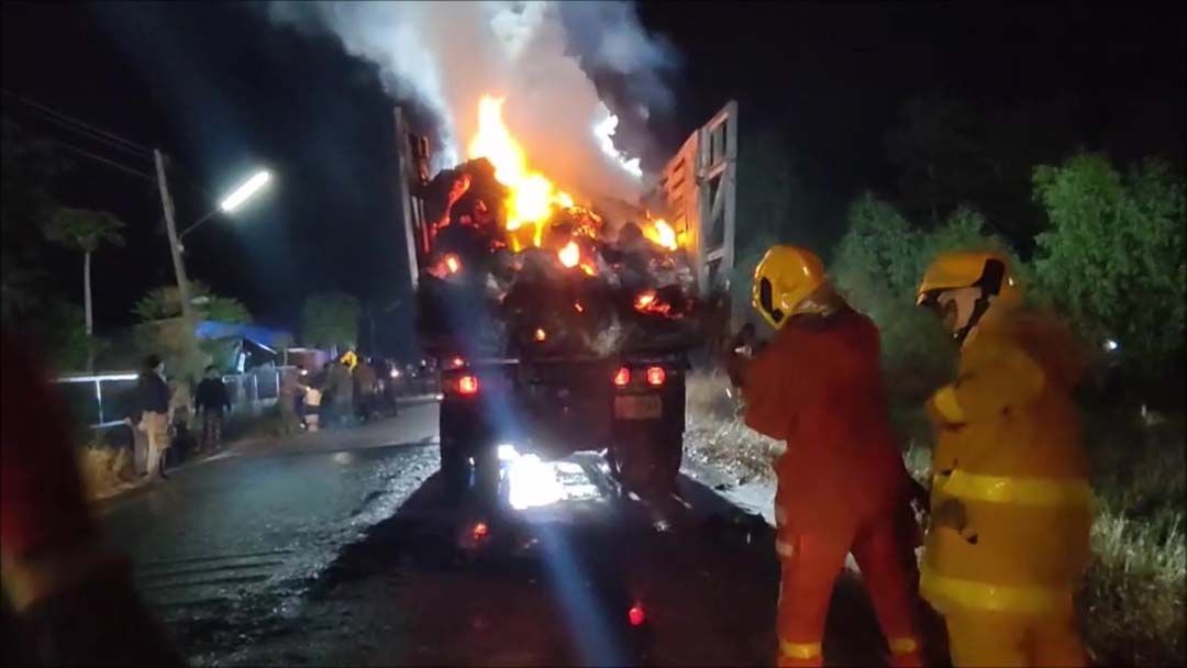 เมื่อเวลา 18.30 น.วันที่ 24 ธันวาคม 2566 ศูนย์วิทยุ 191 จ.อุดรธานี รับแจ้งจากชาวบ้านมีไฟไหม้รถบรรทุก 18 ล้อ ทั้งตัวแม่และตัวลูกที่ขนฟางก้อนจำนวนมาก ไฟกำลังโหมลุกโชน ประกอบลมแรงไฟได้ลามไปไหม้ทุ่งนาของชาวบ้านเป็นบริเวณกว้าง เหตุเกิดบนถนนบ้านหนองแก-บ้านหนองไผ่คำ ต.หนองนาคำ อ.เมือง จ.อุดรธานี ซึ่งเป็นเส้นทางลัดไปมหาวิทยาลัยสามพร้าว