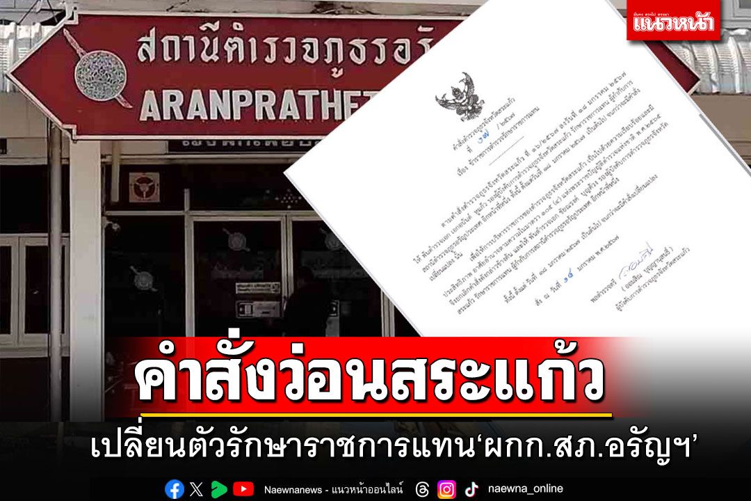 เมื่อเวลา 18.00 น.วันที่ 18 ม.ค.67 กองบังคับการตำรวจภูธรจังหวัดสระแก้ว ได้ออกคำสั่งเปลี่ยนตัวรักษาราชการแทน ผกก.สภ.อรัญประเทศ จ.สระแก้ว หลังจากก่อนหน้านี้มีคำสั่งแต่งตั้ง พ.ต.อ.เอกอนันต์ หูแก้ว รอง ผบก.ภ.จว.สระแก้ว ไปรักษาราชการแทน พ.ต.อ.พิเซษฐ์ ศรีจันทร์ตรา ผกก.สภ.อรัญประเทศ ซึ่งมีคำสั่งให้ไปช่วยราชการที่ศูนย์ปฏิบัติการ ตำรวจภูธรจังหวัดสระแก้ว ได้เพียงแค่ 2 ชั่วโมง