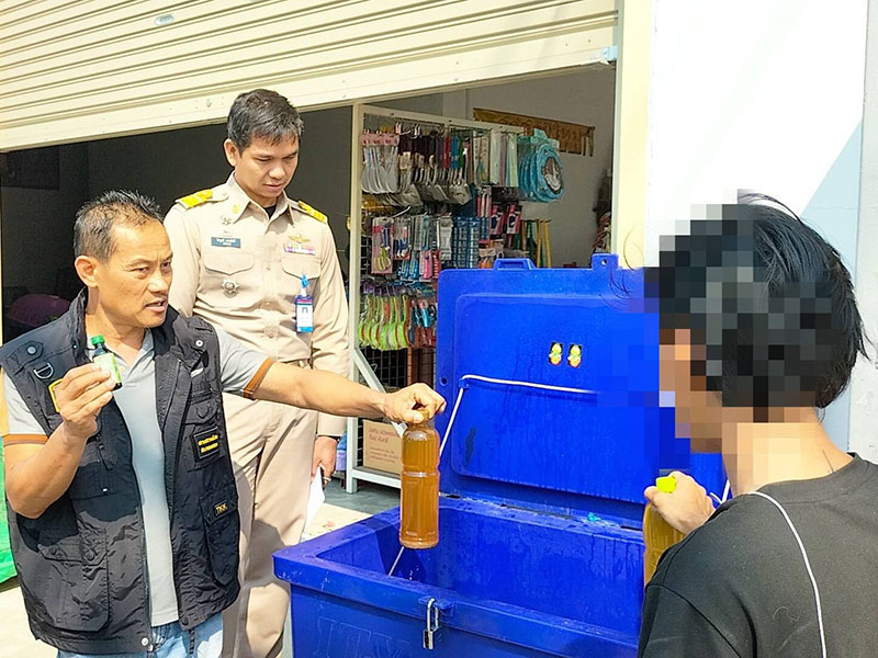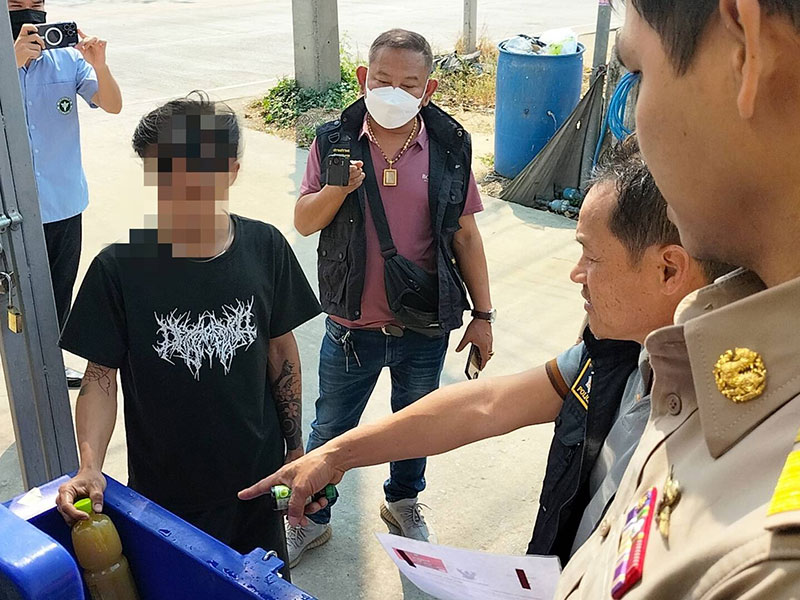 โดยแจ้งหาข้อ 1.ประกอบกิจการ ผลิตนำเข้าหรือขายผลิตภัณฑ์สมุนไพร (น้ำต้มพืชกระท่อม) ที่รัฐมนตรีได้ประกาศตามมาตรา 6 (1) โดยไม่ได้รับอนุญาต 2. ฝ่าฝืนประกาศกระทรวงสาธารณสุข (ฉบับที่ 430) พ.ศ.2564 ออกตามความในพระราชบัญญัติอาหาร พ.ศ.2522 เรื่อง กำหนดอาหารที่ห้ามผลิต นำเข้า หรือจำหน่าย ตามบัญชีแนบท้ายประกาศลำดับที่ 52 กระท่อมส่งพนักงานสอบสวนสถานีตำรวจภูธรคลองหลวง ดำเนินคดีตามกฎหมาย