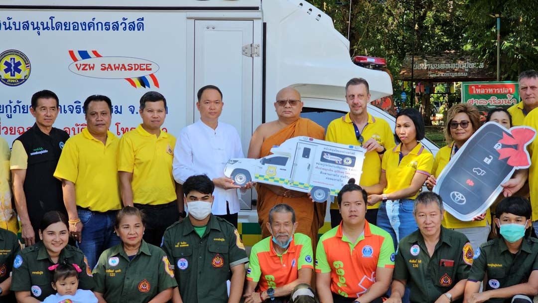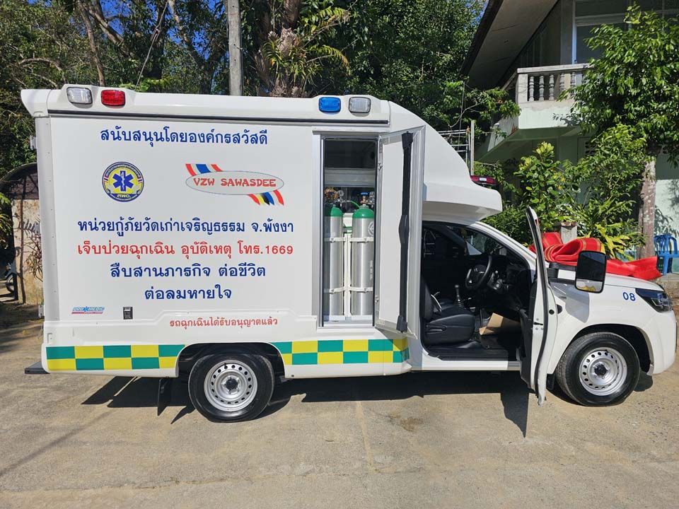 27 กุมภาพันธ์ 2567 ศูนย์กู้ภัยวัดเก่าเจริญธรรม เขตเทศบาลตำบลกระโสม อ.ตะกั่วทุ่ง จ.พังงา นายบัญชา ธนูอินทร์ ปลัดจังหวัดพังงา พร้อม พระครูสังฆวีระ ฐานิสสโร ประธานหน่วยกู้ภัยวัดเก่าเจริญธรรม น.ส.มัลลิกา เทียมแก้ว ผู้ก่อตั้งองค์กรสวัสดี ประเทศเบลเยียมในประเทศไทย นายอำเภอ คณะสงฆ์ชั้นผู้ใหญ่ ผู้ท้องถิ่น ผู้นำท้องที่ ร่วมพิธีมอบรถพยาบาลกู้ชีพ ให้แก่หน่วยกู้ภัยวัดเก่าเจริญธรรมพังงา โดยองค์กรสวัสดีประเทศเบลเยี่ยม มูลค่า 1,550,000 บาท เพื่อสนับสนุน ช่วยเหลือเติมเต็มภารกิจ งานกู้ชีพกู้ภัยวัดเก่าเจริญธรรม ให้มีศักยภาพเพิ่มมากขึ้น ซึ่งการช่วยเหลือได้ รวดเร็ว ทันท่วงที ถูกต้องตั้งแต่จุดเกิดเหตุ การลำเรียง การนำส่งโรงพยาบาล เรียกว่า ระบบการแพทย์ฉุกเฉิน มีผลต่อผู้เจ็บป่วยให้มีโอกาสรอดชีวิตมากขึ้น ทางหน่วยกู้ภัยวัดเก่าเจริญธรรม ร่วมกับ องค์กรสวัสดีประเทศเบลเยียมในประเทศไทย ภาครัฐ เอกชน ตลอดจนพุทธศาสนิกชน ได้ร่วมสนับสนุนกิจกรรมในการจัดหารถกู้ชีพกู้ภัยดังกล่าวจนสามารถจัดซื้อรถพยาบาลได้ตรงตามวัตถุประสงค์ในครั้งนี้