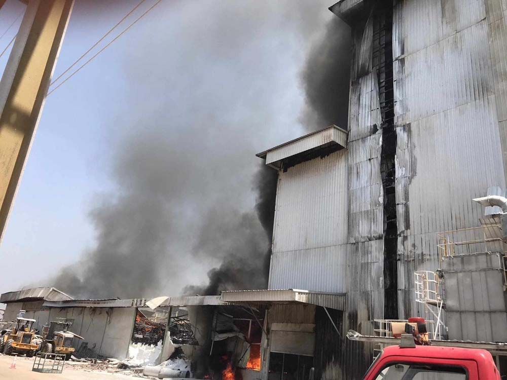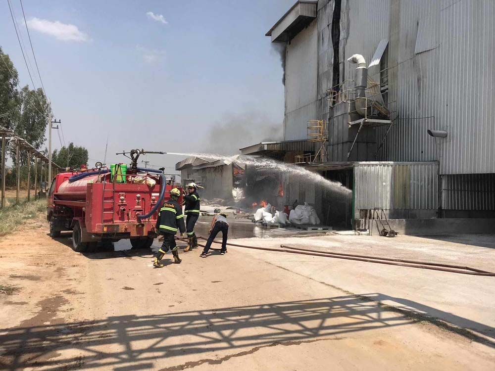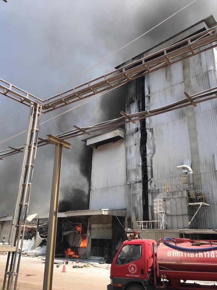 ซี่งไฟลุกไหม้ระดับ 5 เป็นส่วนด้านหลังของโรงงานที่เป็นโกดังเก็บแป้งที่ผลิตเสร็จแล้วผ่านไป 1 ชม เริ่มที่จะสามารถควบคุมไฟมาได้ จนเป็นระดับ 3 แต่ผ่านไป3 ชม. ก็ยังไม่สามารถควบคุมไฟได้เพราะแป้งมันเป็นกระสอบเป็นเชื้อเพลิงชั้นดี ทำให้เพลิงสงบไปสักพักก็โหมขึ้นมาใหม่ จนต้องทำการเปลี่ยนแผน เนื่องจากน้ำฉีดเข้าไปไม่ถึงจุดที่เพลิงลุกไหม้ เลยจะใช้รถแม็คโค เข้ามาทำการรื้อกำแพงด้านข้างของโกดังออกจากนั้นก็จะได้นำเอาแป้งมันที่กองออกมาเพื่อฉีดน้ำต่อไป