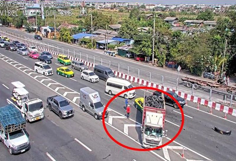 วันที่ 8 มีนาคม เวลา 10.20 น. เกิดอุบัติเหตุ บริเวณถนนเส้น ทล.7 (กรุงเทพฯ-มาบตาพุด) มุ่งหน้ามาบตาพุด ช่วงกิโลเมตรที่ 12 เบี่ยงเข้าสนามบินสุวรรณภูมิ ส่งผลให้มีการกีดขวางการจราจร 2 ช่องทางขวา