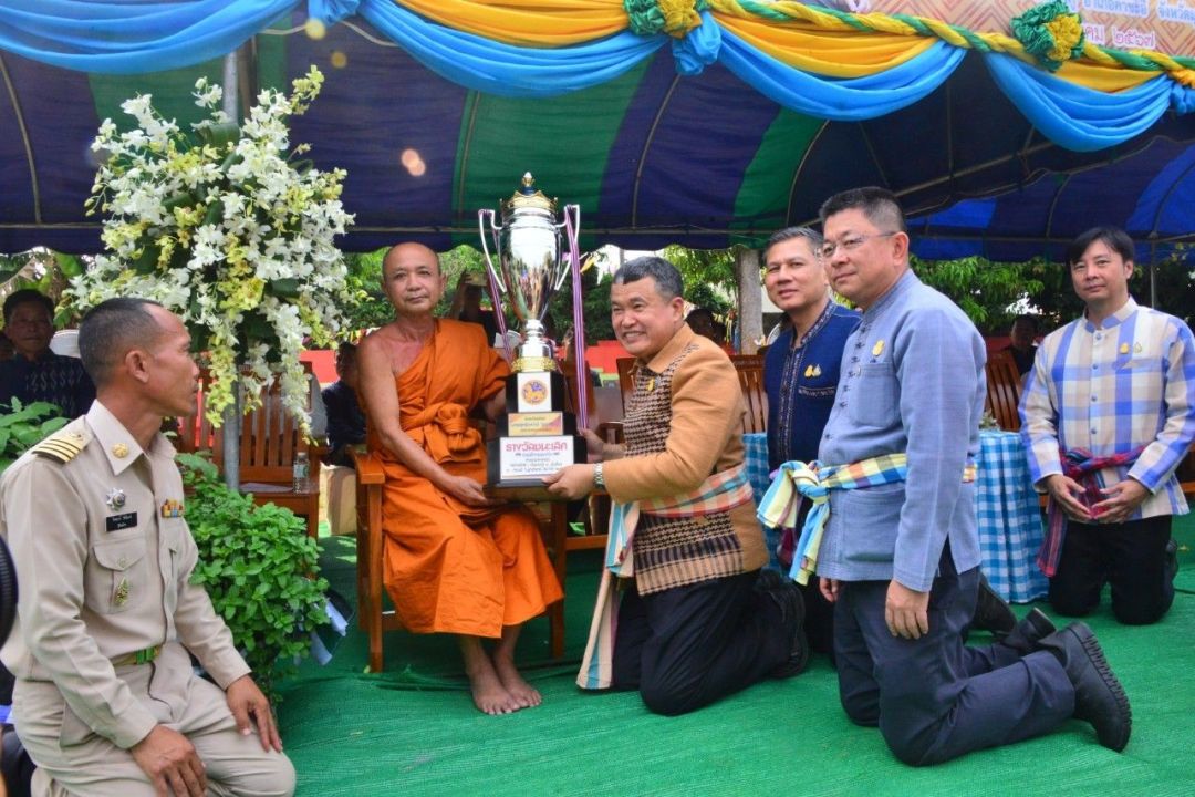 จากนั้น เวลา 15.00 น. นายสุทธิพงษ์ จุลเจริญ ปลัดกระทรวงมหาดไทย และคณะ เดินทางไปยังวัดโพธิ์ศรี บ้านดงภู่ ต.น้ำเที่ยง อ.คำชะอี จ.มุกดาหาร โดยเป็นประธานถวายถ้วยรางวัลชนะเลิศการเส็งกลองกิ่ง (จึ่ง) งานบุญผะเหวดบุญเดือน 4 แด่พระครูกิตติธรรมนันท์ เจ้าคณะตำบลน้ำเที่ยง เจ้าอาวาสวัดโพธิ์ศรี เพื่อเป็นรางวัลให้กับทีมชาวบ้านที่จะเข้าแข่งขัน ในระหว่างวันที่ 29 - 31 มีนาคม 2567 พร้อมทั้งรับชมการแสดงฟ้อนรำ "ออนซอนชนเผ่าชาวคำชะอี" ของกลุ่มสตรี 5 ชนเผ่าในพื้นที่ และรับชมการสาธิตเส็งกลองกิ่ง ระหว่างชุมชนบ้านดงภู่ หมู่ที่ 5 กับหมู่ที่ 11 และร่วมเส็งกลองกิ่ง กับนายวรญาณ บุญณราช ผู้ว่าราชการจังหวัดมุกดาหาร และเยี่ยมชมโครงการกุฏิชีวาภิบาล ศูนย์ดูแลสุขภาพพระสงฆ์