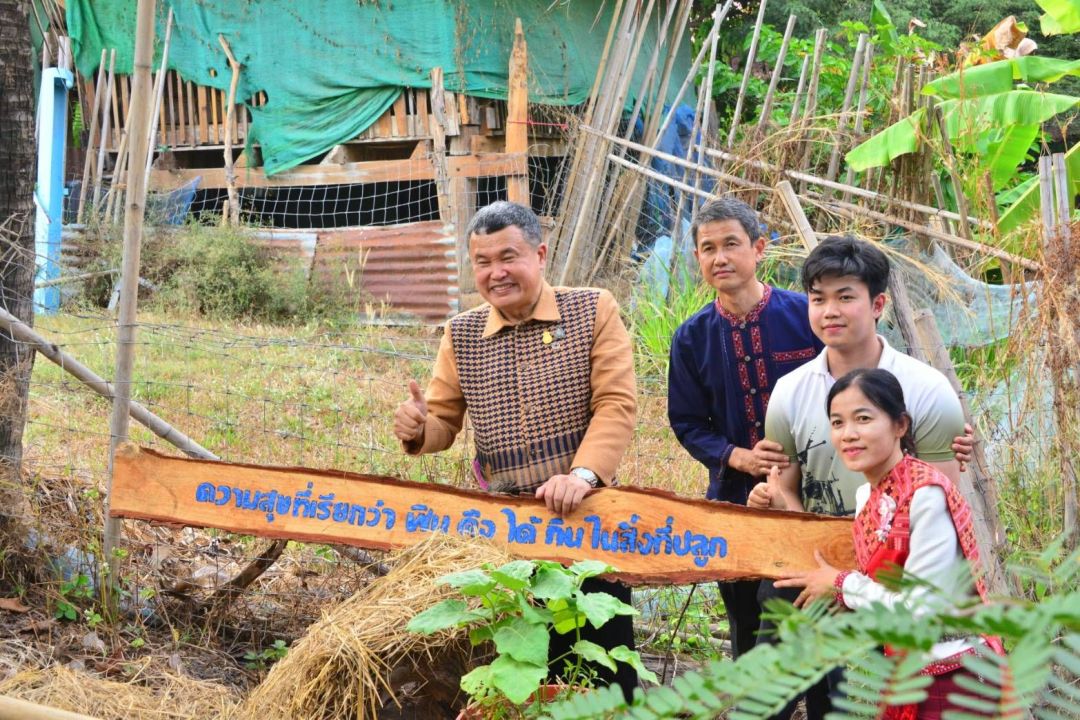 ต่อมาในเวลา 15.40 น. นายสุทธิพงษ์ จุลเจริญ ปลัดกระทรวงมหาดไทย และคณะ เดินทางเยี่ยมชมครัวเรือนตัวอย่างผู้น้อมนำแนวพระราชดำริการเสริมสร้างความมั่นคงด้านอาหารของสมเด็จพระกนิษฐาธิราชเจ้า กรมสมเด็จพระเทพรัตนราชสุดา ฯ สยามบรมราชกุมารี "บ้านนี้มีรัก ปลูกผักกินเอง" ของนางประภาศรี พรทอง หมู่ 1 บ้านดอนสวรรค์ ตำบลน้ำเที่ยง ซึ่งได้แปลงพื้นที่บริเวณโดยรอบบ้านให้กลายเป็นสวนพืชผักสวนครัวและพืชสมุนไพรนานาชนิด โดยในแต่ละวันจะมีการเก็บเกี่ยวผลผลิตในบริเวณแปลงพืชผักสวนครัวและพืชสมุนไพร มาใช้ประกอบอาหารในครัวเรือน และยังมีพืชผักสวนครัวที่เหลือมาแบ่งปันให้กับเพื่อนบ้านและสมาชิกในชุมชน ทำให้เกิดพลังความรักความสามัคคี ความผูกพัน ความเอื้อเฟื้อเผื่อแผ่ มาอย่างต่อเนื่อง