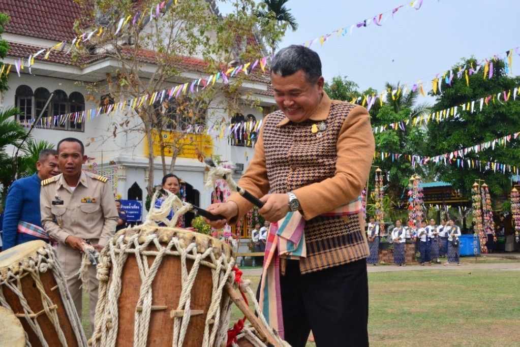 นายสุทธิพงษ์ จุลเจริญ ปลัดกระทรวงมหาดไทย กล่าวว่า ขอกราบอนุโมทนาสาธุการพระเดชพระคุณ พระครูกิตติธรรมนันท์ เจ้าคณะตำบลน้ำเที่ยง เจ้าอาวาสวัดโพธิ์ศรี ผู้เป็นหลักชัยของพี่น้องสาธุชนตำบลน้ำเที่ยงแห่งนี้ ในการสืบสาน รักษา และต่อยอด "กลองกิ่ง" ซึ่งเป็นมรดกภูมิปัญญาทางวัฒนธรรม เป็นกลองที่อยู่คู่ชีวิตของกลุ่มชาติพันธุ์ในพื้นที่อำเภอคำชะอีมายาวนาน ตั้งแต่สมัยบรรพบุรุษ ทั้งกลุ่มชาติพันธุ์ผู้ไท ไทกะเลิง ย้อ ข่า และชาวไทยอิสาน ในงานประเพณีฮีต 12 หรือเทศกาลต่าง ๆ เช่น บุญผะเหวด บุญบั้งไฟ บุญแข่งเรือ งานบุญ งานบวช งานแต่งงาน แห่กัณฑ์หลอน บุญกฐิน พิธีสืบชะตา โดยเชื่อกันว่าเสียงของกลองจะดังไปถึงพญาแถน เมื่อพญาแถนได้ยินเสียงกลองกิ่งเป็นสัญญาณให้ฝนตกต้องตามฤดูกาล และยังเชื่อกันว่าความดังของเสียงกลองกิ่งจะดังถึงผีสางเทวดาให้รับรู้แทนคำพูดของมนุษย์ ส่วนด้านความสัมพันธ์กับสังคม ผู้ที่เกี่ยวข้องกับการทำกลองส่วนใหญ่จะมีมนุษย์สัมพันธ์ดี มีน้ำใจ รู้จักช่วยเหลือเพื่อนมนุษย์และสังคม หากเป็นผู้ตีกลองก็มักจะเป็นผู้ที่มีสุขภาพแข็งแรง สมบูรณ์ นิสัยร่าเริง รู้จักให้อภัยผู้อื่น สำหรับช่างทำกลองเป็นผู้มีภูมิปัญญา ใช้ความสามารถและเทคนิคต่าง ๆ สร้างสรรค์ ประดิษฐ์ตกแต่งวัสดุ ทำให้เกิดเสียงเพื่อเป็นสัญญาณต่าง ๆ ตลอดจนถึงการขับเคลื่อนโครงการกุฏิชีวาภิบาล ศูนย์ดูแลสุขภาพพระสงฆ์ ที่เป็นสถานที่ที่มีคุณประโยชน์ในการดูแลรักษาพระภิกษุสงฆ์ผู้อาพาธในขั้นปฐมภูมิ โดยมีคุณหมอ พยาบาล นักวิชาการสาธารณสุข มาร่วมเป็นภาคีเครือข่ายในการดูแลสงเคราะห์พระภิกษุสงฆ์ผู้อาพาธ ภายใต้การนำของท่านนายอำเภอคำชะอี และในพื้นที่บริเวณวัดแห่งนี้ยังสอดคล้องกับแนวทางขับเคลื่อนตามบันทึกข้อตกลงโครงการวัด ประชา รัฐ สร้างสุข ที่ได้ถูกจัดทำขึ้นระหว่างกระทรวงมหาดไทยและเจ้าประคุณสมเด็จพระมหาวีรวงศ์ เลขานุการสมเด็จพระสังฆราช ประธานฝ่ายสาธารณูปการ เพื่อมุ่งสร้างวินัยของผู้คนและคณะสงฆ์ ร่วมดูแลศาสนสถานให้ถูกสุขลักษณะในลักษณะ 5ส มีความเป็นระเบียบเรียบร้อย ความสะอาดสะอ้าน เป็น “รมณียสถาน” ของคนในชุมชน