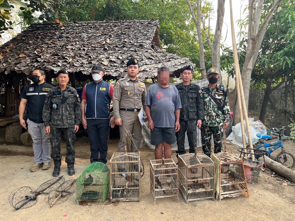 ประกอบด้วย 1.นายล้วน (ขอสงวนนามสกุล) อายุ 71 ปี ชาวบ้าน ต.บ้านกาศ อ.แม่สะเรียง จ.แม่ฮ่องสอน 2.นายนำโชค (ขอสงวนนามสกุล) อายุ 71 ปี ชาวบ้าน ต.บ้านกาศ อ.แม่สะเรียง จ.แม่ฮ่องสอน 3.นายสุดเขต(ขอสงวนนามสกุล) อายุ 39 ปี ชาวบ้าน ต.กองก๋อย อ.สบเมย จ.แม่ฮ่องสอน และนายภานุพงศ์ (ขอสงวนนามสกุล) อายุ 20 ปี ชาวบ้าน ต.บ่อสลี อ.ฮอด จ.เชียงใหม่ ของกลางเป็นสัตว์ป่าคุ้มครอง นกกระรางคอดำ หรือนกซอฮู , นกกางเขนดง หรือนกบินหลาดง หรือนกจิงปุ๊ย , นกกวัก หรือนกกระรางหัวหงอก , นกกรงหัวจุก หรือนกปรอดหัวโขน และนกกระทาทุ่งรวมทั้งหมด 27 ตัว นอกจากนี้ยังมีของกลางอื่นๆ เช่นเพนียดดักนก , ซิงข่ายดักนก , กรงนก , จั่นเจาดักนก รวม 88 รายการ พร้อมด้วยอาวุธปืน ยาวแบบไทยประดิษฐ์ 1 กระบอก เครื่องกระสุนปืน ขนาด 5.56 มม. 20 นัด และซองกระสุนปืนสำหรับเครื่องกระสุนปืนขนาด 5.56 มม. 1 อัน