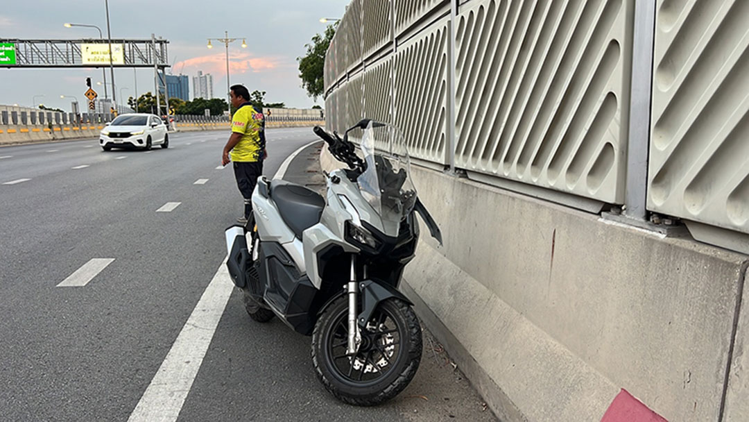 ที่เกิดเหตุพบร่างของนายสุรเชษฐ์ ไทยอ่อน อายุ 55 ปี พนักงานขนส่งสินค้ามีชื่อแห่งหนึ่งลักษณะนอนคว่ำหน้าเสียชีวิตขาซ้ายหัก แขนขวาหัก ใบหน้ายุบ ห่างไปประมาณ 100 เมตร พบรถจยย.ฮอนด้า รุ่น ADV สีเทา ทะเบียน 7ขด 4375 กทม.จอดอยู่ บริเวณหน้ารถมีร่องรอยพังเสียหาย ในที่เกิดเหตุไม่พบคู่กรณี ทางเจ้าหน้าที่ตรวจสอบพบร่องรอยที่แบริเออร์คอนกรีตเป็นร่องรอยขูดและเสาเหล็ก ลักษณะชนก่อนที่ทั้งรถทั้งคนจะไถลไป