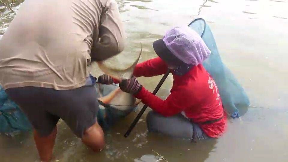 ทั้งนี้มีนักหว่านแหบางคนที่สามารถจับปลาบึกตัวใหญ่ได้มีน้ำหนักเกือบๆ 30 กิโลกรัม โดยส่วนมากนักว่านแหที่มาจับปลาในครั้งนี้ต่างก็จะนำปลาที่ได้ไปเตรียมไว้ให้ลูกหลาน ญาติพี่น้องที่จะเดินทางกลับบ้านในช่วงเทศกาลวันสงกรานต์ได้ทำกินกันในครอบครัว - 003