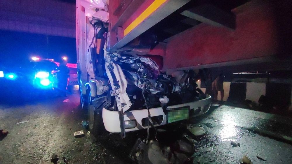 กระบะตู้ทึบพุ่งชนท้ายรถเทรลเลอร์จอดเสียข้างทางคนขับสาหัสติดภายใน