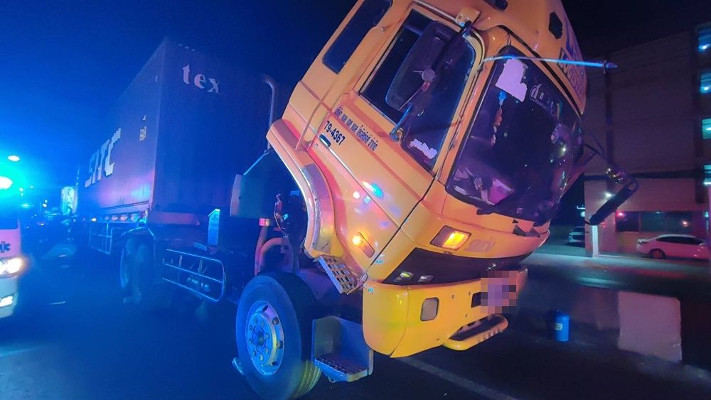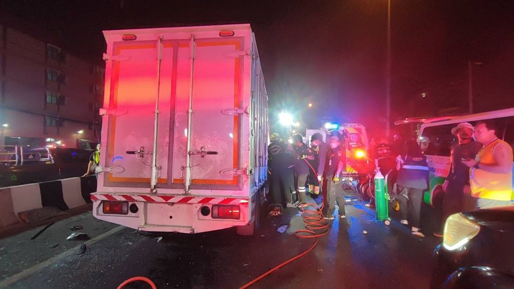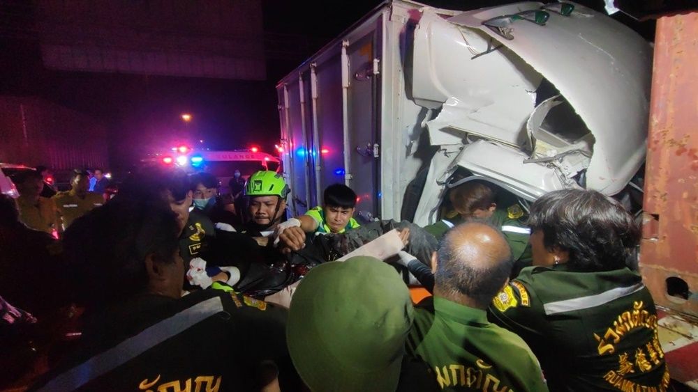 ที่เกิดเหตุพบเจ้าหน้าที่กู้ภัยกำลังใช้เครื่องตัดถ่างนำคนขับรถกระบะตู้ทึบยี่ห้ออีซูซุ ทะเบียนกรุงเทพมหานคร ที่ชนท้ายรถเทรลเลอร์บรรทุกตอนเทเนอร์ยี่ห้อนิสันยูดี ทะเบียนตัวแม่ กรุงเทพมหานคร ทะเบียนตัวพ่วง กรุงเทพมหานคร ต่อมาเจ้าหน้าที่กู้ภัยนำคนเจ็บออกมาจากตัวรถได้ทราบชื่อนายธิชัฎศิลป์ (สงวนนามสกุล) อายุ 38 ปีให้รถกู้ชีพโรงพยาบาลธรรมศาสตร์ เฉลิมพระเกียรตินำส่งโรงพยาบาลเพราะอาการสาหัส