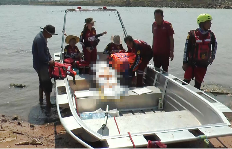 จากนั้น หน่วยกู้ภัยโนนดินแดง จึงได้ช่วยกันใช้เลื่อยตัดต้นยูคาลิปตัสที่ทับร่างผู้เสียชีวิตอยู่ออก โดยใช้เวลาประมาณ 30 นาที จึงสามารถนำร่างนายสัญ ออกจากจุดเกิดเหตุได้และโดยพนักงานสอบสวนก็ได้ตรวจสอบสภาพศพเบื้องต้นและบันทึกภาพไว้เป็นหลักฐาน ก่อนที่หน่วยกู้ภัยฯ จะนำร่างผู้เสียชีวิตขึ้นเรือออกไปตรงจุดที่รถจอด ก่อนจะนำร่างผู้เสียชีวิตไปให้แพทย์ชันสูตรที่โรงพยาบาลและมอบร่างให้ญาตินำไปกลับประกอบพิธีทางศาสนาต่อไป