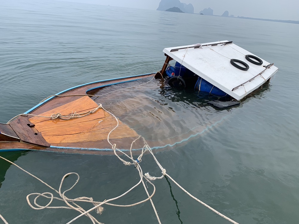 จนมีคนโทรหาหน่วยงานรัฐว่ามาหรือยัง ซึ่งได้ยินว่าน่าจะอีกประมาณ 10 นาที ตนจึงบอกว่าคนที่ติดอยู่ใต้เรือจะไหวหรือเปล่า ขอแค่ให้ใครทำอะไรสักอย่างก่อน ก่อนที่คนที่มาช่วยจะช่วยกันใช้เชือกดึงให้เรือที่คว่ำหงายขึ้นมา ก็เลยช่วยอีก 3 คนไว้ได้ ซึ่งการช่วยเหลือทั้งหมดใช้ระยะเวลาประมาณ 30 นาที ซึ่งลูกตนกินน้ำทะเลเข้าไปเยอะจนปอดติดเชื้อ ก่อนจะถูกส่งตัวต่อมาที่ รพ.ตรัง
