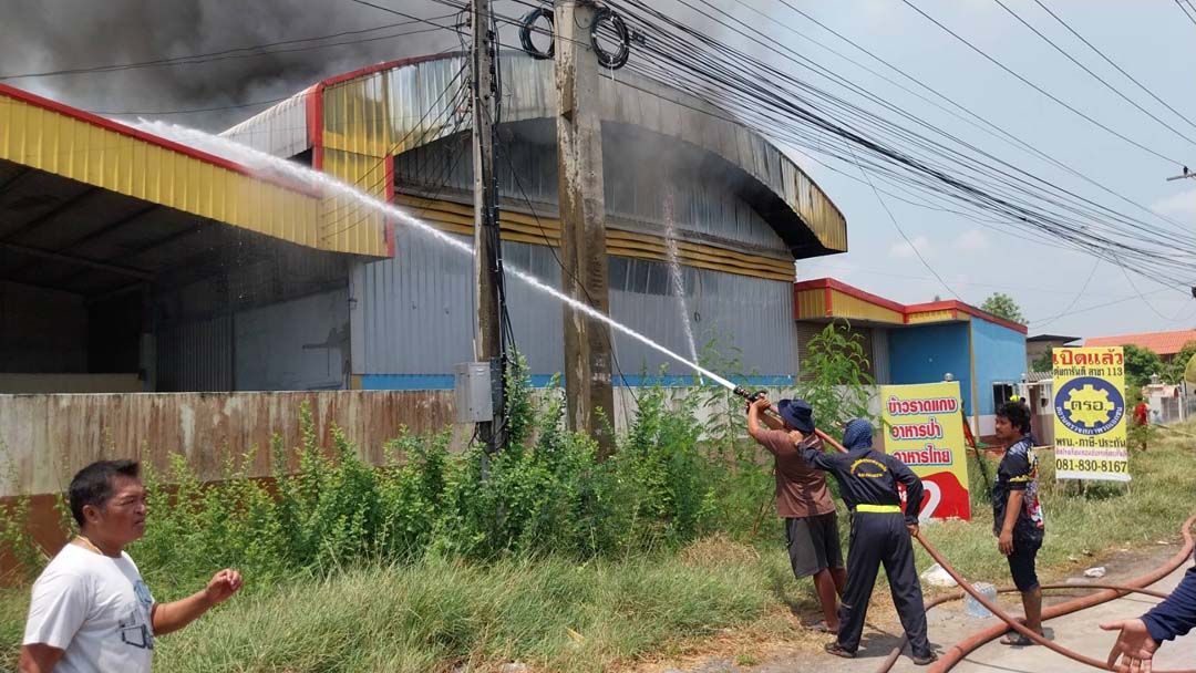นายสมชาย อายุ 52 ปี บ้านใกล้เคียงที่เกิดเหตุ กล่าวว่า ขณะนั้นตนนั่งกินข้าวอยู่ภายในห้อง ได้ยินเสียงระเบิดของหม้อแปลงไฟฟ้าที่อยู่บริเวณหน้าบ้าน จึงเดินออกมาดูหน้าบ้าน จากนั้นประมาณ 3 นาทีมองไปภายในโกดังพบว่ามีควันออกมาจากตัวโกดัง และมีแสงไฟขึ้นมาอย่างรวดเร็ว จึงแจ้งเจ้าหน้าที่เข้าช่วยเหลือดับเพลิง และทราบว่าภายในโกดังเป็นที่เก็บเสื้อชั้นใน กางเกงใน เบาะหุ้มรถ ไม้ถูพื้น ซึ่งเป็นพลาสติกและผ้า ซึ่งเป็นเชื้อเพลิงอย่างดี