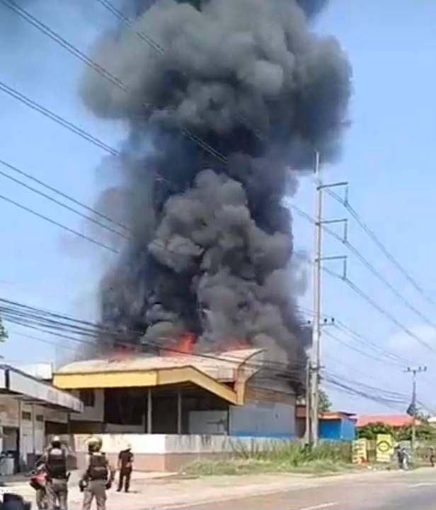 ระทึก! ไฟไหม้โกดังเก็บสินค้าย่านลาดหลุมแก้ววอด ควันพวยพุ่งเต็มท้องฟ้า
