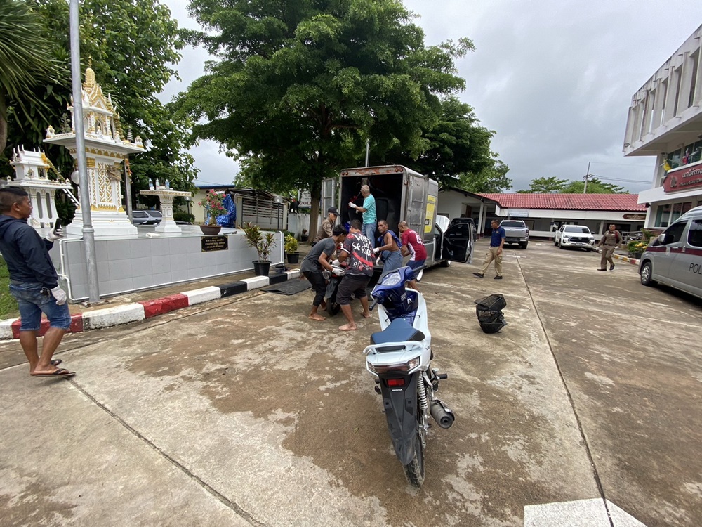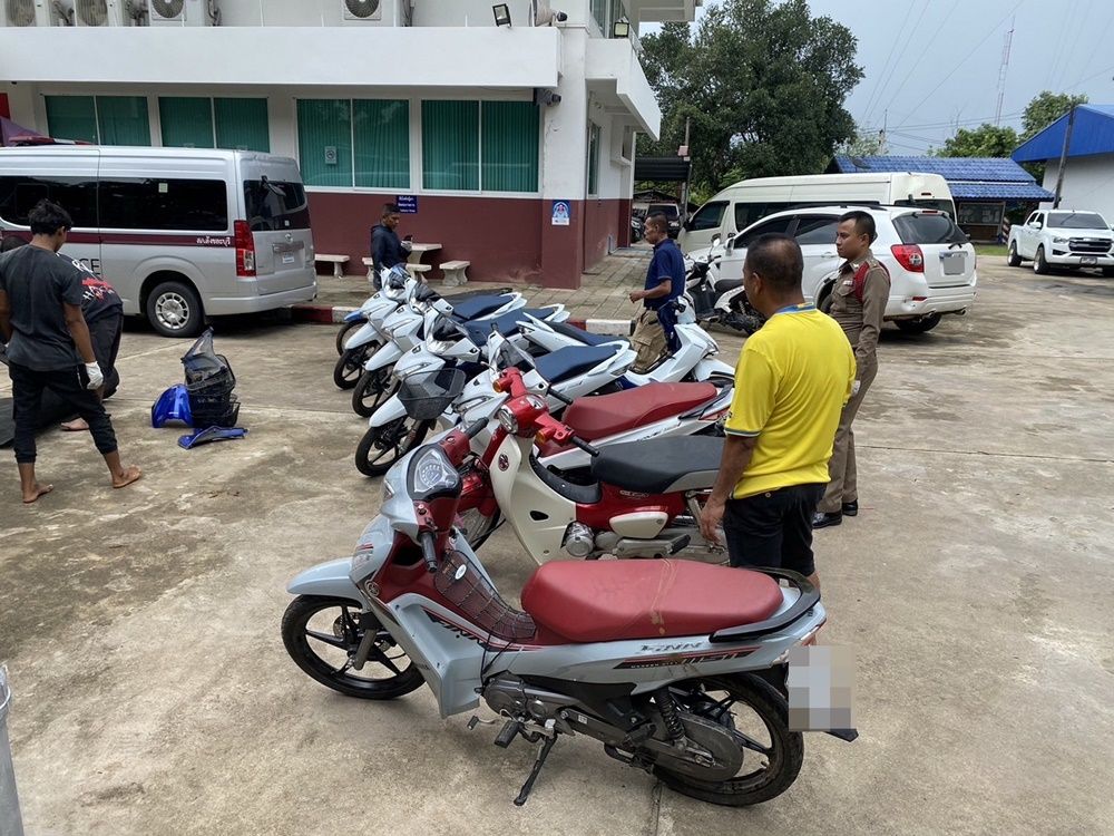 จากนั้นจึงตรวจยึดอายัดรถยนต์กระบะทึบคันดังกล่าวเอาไว้ พร้อมกับประสานรถยกมาลากไปตรวจสอบอย่างละเอียดที่ สภ.สังขละบุรี จากการตรวจสอบพบรถจักรยานยนต์ ถูกจัดเรียงเอาไว้ภายในอย่างเป็นระเบียบ รวมจำนวน 8 คัน ประกอบด้วย 1.รถจักรยานยนต์ ยี่ห้อฮอนด้า เวฟ 125 i สีขาว-แดง ทะเบียน ราชบุรี 2.รถจักรยานยนต์ ยี่ห้อฮอนด้า เวฟ 125i สีขาว-น้ำเงิน ไม่มีป้ายทะเบียน 3.รถจักรยานยนต์ ยี่ห้อยามาฮ่า ฟินน์ 115i สีเทา-แดง ทะเบียน ราชบุรี 4.รถจักรยานยนต์ ยี่ห้อฮอนด้า เวฟ 125i สีขาว-น้ำเงิน (ไม่ติดแผ่นป้ายทะเบียน) 5.รถจักรยานยนต์ ยี่ห้อฮอนด้าเวฟ 125i สีขาว-น้ำเงิน (ไม่ติดแผ่นป้ายทะเบียน) 6.รถจักรยานยนต์ ยี่ห้อฮอนด้า เวฟ 125i สีขาว-น้ำเงิน (ไม่ติดแผ่นป้ายทะเบียน) 7.รถจักรยานยนต์ ยี่ห้อ ยามาฮ่า ฟินน์ 115i สีฟ้า ทะเบียน ราชบุรี และ 8.รถจักรยานยนต์ ยี่ห้อฮอนด้า ซูเปอร์คับ 110i สีแดง แผ่นทะเบียนป้ายแดง ราชบุรี