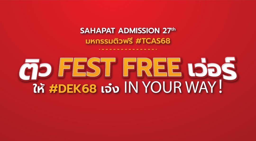 นางสาวเบญญาสิริณัฐ ธนพรโชคไชย ผู้จัดการส่วนโฆษณาและสื่อสารองค์กร บริษัท สหพัฒนพิบูล จำกัด (มหาชน) เปิดเผยว่า บริษัท สหพัฒนพิบูล จำกัด (มหาชน) หรือ SPC ได้จัดทำโครงการ “Sahapat Admission” เพื่อทบทวนความรู้ให้น้อง ๆ ม.ปลาย ได้เตรียมตัวสอบเข้ามหาวิทยาลัยด้วยการจัดติวฟรี มานานถึง 27 ปี ผ่านมาทุกยุคทุกสมัย ร่วมรับมือกับการเปลี่ยนแปลงของการศึกษาไทยมาโดยตลอด เพื่อเปิดโอกาสทางการศึกษาให้เด็กไทยเพื่อให้เกิดผลสำเร็จคือการสอบเข้ามหาวิทยาลัยได้ตามที่ตั้งใจไว้ ด้วยการจัดติวเตอร์ชั้นนำระดับประเทศมาสอนอย่างเข้มข้น พร้อมเกาะติดทุกการเปลี่ยนแปลงของการศึกษาไทย เพื่อเติมเต็มความรู้ครบทุกเรื่องสำคัญ เตรียมความพร้อมและเสริมความมั่นใจให้เด็กไทยก่อนลงสนามสอบจริง และยังมีการพัฒนาโครงการอย่างต่อเนื่อง และในปีนี้ Sahapat Admission ได้ยกระดับไปอีกขั้น ด้วยแนวคิด “Sahapat Admission ครั้งที่ 27 “ติว FEST FREE เว่อร์”ให้ #DEK68 เจ๋ง IN YOUR WAY!