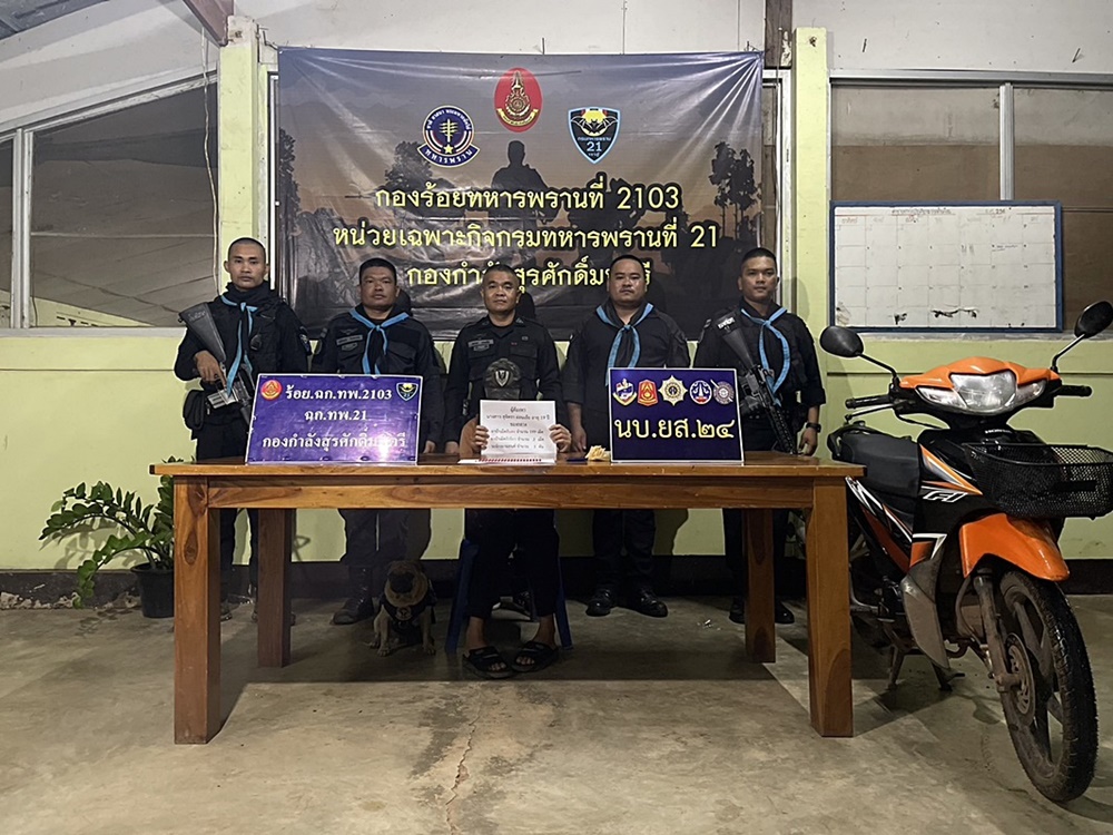 ต่อมาเมื่อวันที่ 12 สิงหาคม 2567 ที่ผ่านมา ร.อ.ธนากร นาเหล็ก ผู้บังคับกองร้อยเฉพาะกิจทหารพรานที่ 2103 กรมเฉพาะกิจทหารพรานที่ 21 (ผบ.ร้อย ฉก.ทพ.2103 ฉก.ทพ.21กกล.ฯ) นำกำลังชุดปฏิบัติการเคลื่อนที่เร็ว ปฏิบัติภารกิจลาดตระเวนตามจุดเสี่ยง จุดล่อแหลมตามปกติบนถนนสายรอง เชื่อมต่อระหว่างหมู่บ้าน หมายเลข นพ.1036 สายพะทาย-เหล่าสวนกล้วย จนมาถึงบ้านโนนสวรรค์ หมู่ 2 ต.พะทาย อ.ท่าอุเทน จ.นครพนม พบรถจักรยานยนต์ 2 คันขับตามกันมา ได้แล่นสวนทางกับรถยนต์ของทหารพราน โดยคันหน้ามีหญิงสาวขับมาคนเดียว ส่วนคันหลังเป็นหญิงสาวขับซ้อนกันมา 2 คนโดยคันหน้าได้แสดงอาการตื่นตกใจจนเป็นที่น่าสงสัย เจ้าหน้าที่จึงกลับรถตามไปแล้วส่งสัญญาณให้หยุด พร้อมแสดงตนขอตรวจค้น หญิงสาวต้องสงสัยยิ่งมีสีหน้าตื่นเหงื่อผุดออกมาเป็นเม็ดๆ ในขณะที่เพื่อนหญิงที่ขับตามหลังมาอีกคัน แสดงความบริสุทธิ์ยินดีให้ตรวจค้นอย่างเต็มที่