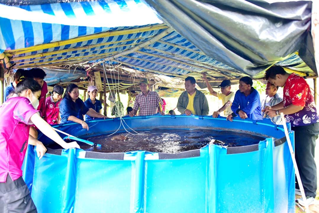 นักวิจัยสาขาวิชาประมง คณะเทคโนโลยี มหาวิทยาลัยมหาสารคาม ลงพื้นที่โครงการบริการวิชาการเพื่อสร้างนวัตกรรมและชุมชนต้นแบบสู่การพัฒนาที่ยั่งยืน “โครงการเลี้ยงปลานิลในระบบไบโอฟลอคที่เป็นมิตรกับสิ่งแวดล้อม” ถ่ายทอดความรู้ให้กับเกษตรกรผู้เลี้ยงปลานิล พร้อมฝึกอบรมเชิงปฏิบัติการ หวังให้เป็นต้นแบบการเรียนรู้ของชุมชน ให้เป็นทั้งผู้ผลิต ผู้บริโภค สร้างอาชีพ มีรายได้ ก่อให้เกิดประโยชน์และความคุ้มค่า