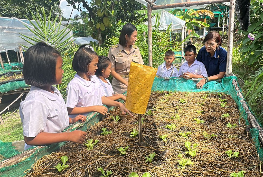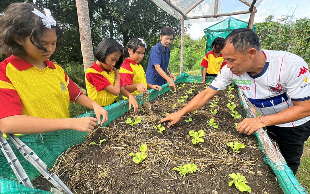 ผักที่ปลูกไม่ใส่ปุ๋ยเคมีไม่มียาฆ่าแมลง แต่จะสอนให้เด็กหมั่นดู หมั่นสังเกตช่วยกำจัดหนอนแมลง และขยันรดน้ำพรวนดิน พืชผักจึงปลอดสารพิษและมีรสชาติหวานกรอบ เด็กจะชื่นชอบและรู้คุณค่าที่กว่าจะได้กินต้องหมั่นดูแล เด็กจะนำความรู้ไปบอกพ่อแม่พี่น้องให้ช่วยกันปลูกเองกินเองเหลือค่อยนำไปขาย เกิดการประหยัดมีความพอเพียงตามมา