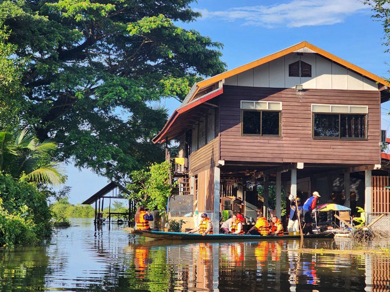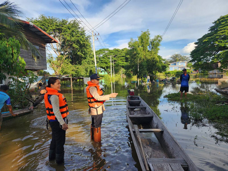 ผู้ว่าฯนครพนม ลุยน้ำล่องเรือนั่งอีแต๋น ตรวจสถานการณ์น้ำท่วม หลังน้ำสงครามล้นตลิ่ง พบนาล่มกว่า 2 หมื่นไร่ เร่งสำรวจความเสียหายเพื่อให้ความช่วยเหลือ