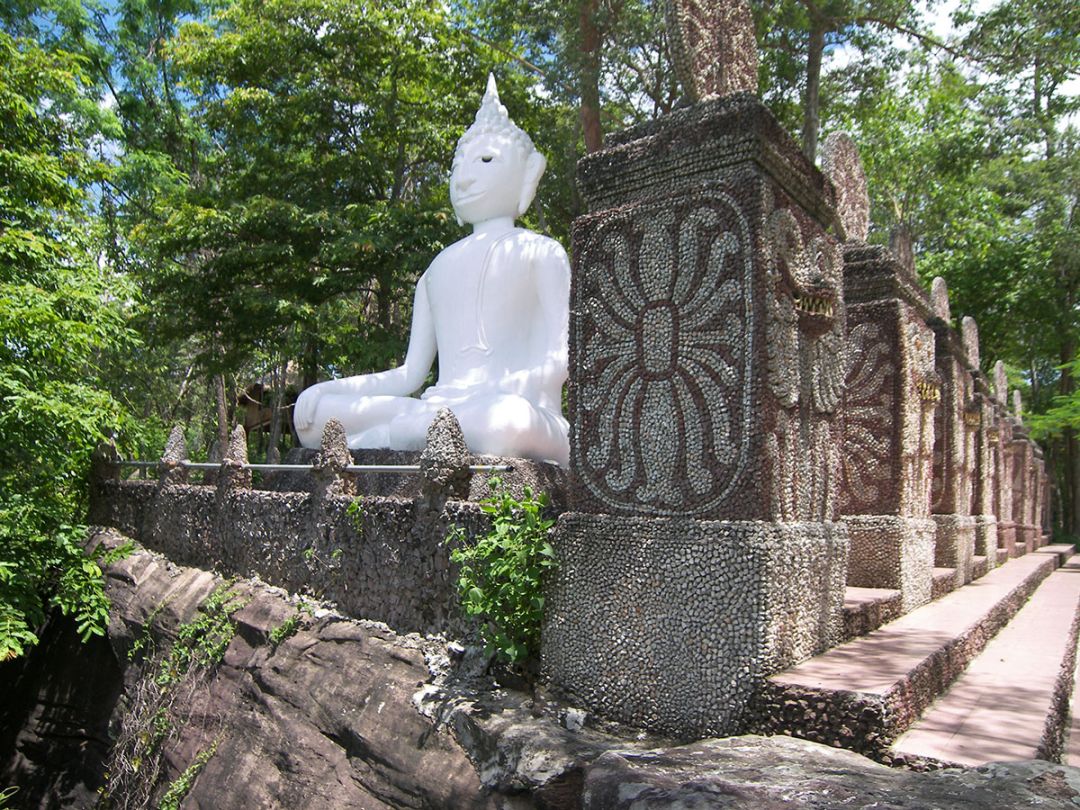 กระทั่งปี พ.ศ.2529 คณะสงฆ์และชาวบ้าน ต.หนองไฮ อ.เสนางคนิคม จ.อำนาจเจริญ ร่วมกันดำเนินการก่อสร้าง พระพุทธรูปปางมารวิชัย สีขาวทั้งองค์ บนหน้าผา นามว่า “พระศรีรัตนตรัยรัตน์” พร้อมกับสร้างบันได 245 ขั้น เพื่อเป็นทางขึ้น-ลงภูเขาของพระสงฆ์และพุทธศาสนิกชน