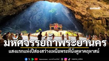 มหัศจรรย์ถ้ำพระยานคร! แห่ชมแสงแรกแห่งปี ส่องสว่างเหนือพระที่นั่งคูหาคฤหาสน์