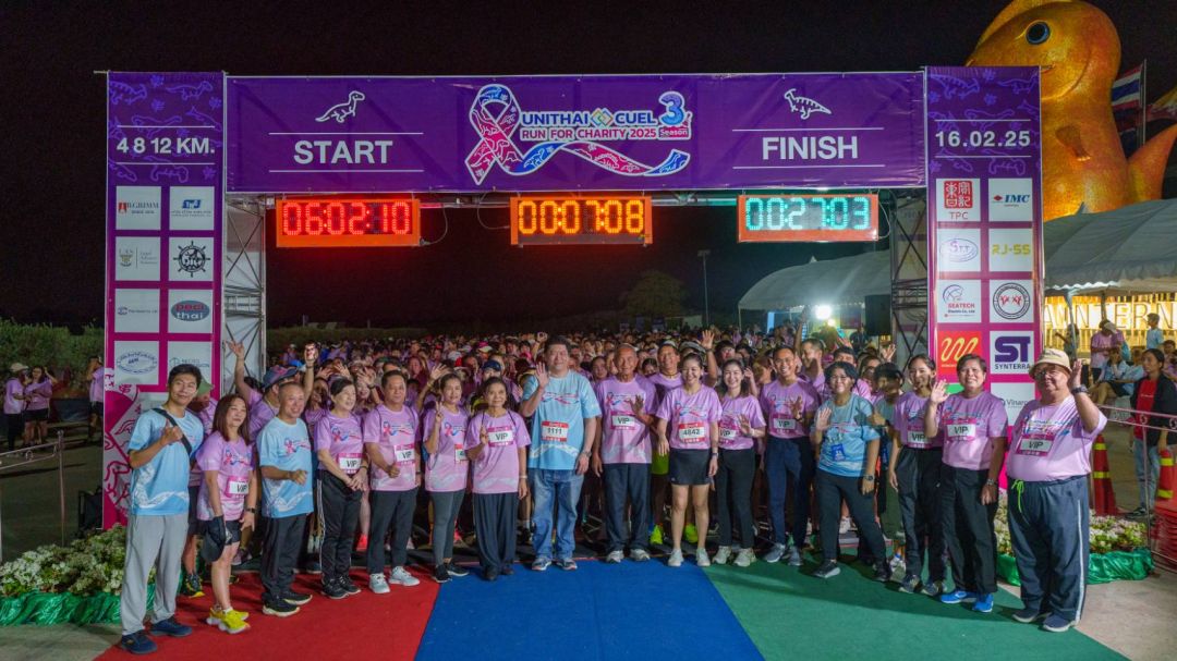 กลุ่มบริษัทยูนิไทย ร่วมกับซียูอีแอล จัดกิจกรรมวิ่งการกุศล “UNITHAI-CUEL Run for Charity 2025 ครั้งที่ 3 วิ่งด้วยใจ ในสวนสวย ช่วยผู้ป่วยมะเร็ง” รายได้หลังหักค่าใช้จ่าย มอบให้โรงพยาบาลสมเด็จฯ ณ ศรีราชา สภากาชาดไทย จำนวน 1.4 ล้านบาท