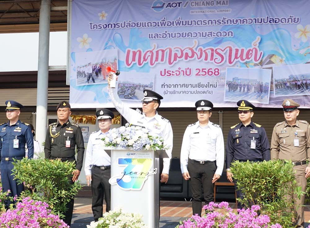 วันที่ 9 เมษายน 2568 นาวาอากาศโท รณกร เฉลิมแสนยากร ผู้อำนวยการท่าอากาศยานเชียงใหม่ เป็นประธานปล่อยแถวเจ้าหน้าที่รักษาความปลอดภัย ณ ท่าอากาศยานเชียงใหม่ เพื่อเพิ่มมาตรการรักษาความปลอดภัยและอำนวยความสะดวกแก่ผู้โดยสารในช่วงเทศกาลสงกรานต์ ประจำปี 2568 โดยมีคณะผู้บริหารและเจ้าหน้าที่ท่าอากาศยานเชียงใหม่ หน่วยงานด้านความมั่นคงที่ปฏิบัติงาน ณ ท่าอากาศยานเชียงใหม่ อาทิ สถานีตำรวจภูธรภูพิงคราชนิเวศน์, กองบังคับการตำรวจท่องเที่ยว, ด่านตรวจคนเข้าเมือง, มณฑลทหารบกที่ 33 และกองบิน 41 ตลอดจนสายการบินและผู้ประกอบการ เข้าร่วมกิจกรรม เพื่อเตรียมความพร้อมรับปริมาณผู้โดยสารและเที่ยวบิน ที่คาดว่าจะเพิ่มขึ้นในช่วงเทศกาลสงกรานต์