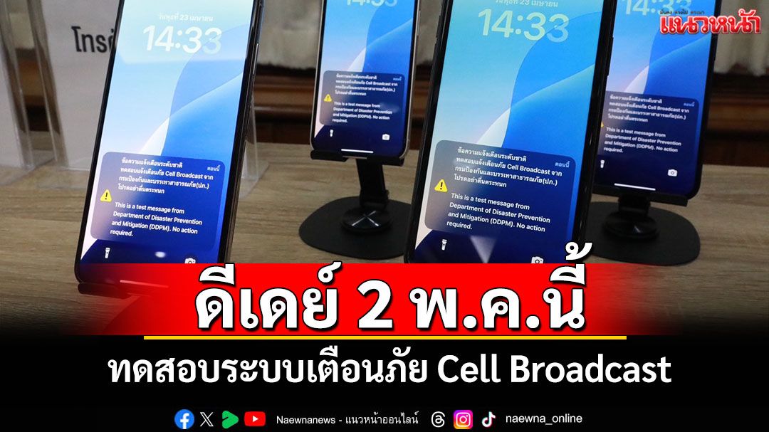 "ปภ."ผนึก"6 หน่วยงาน" ถกเตรียมพร้อมระบบแจ้งเตือนภัย Cell Broadcast เผยเตรียมทดสอบครั้งแรกทั่วไทย 2 , 7 , 13 พ.ค.นี้ สร้างความมั่นใจประชาชน ก่อนเปิดใช้งานเต็มรูปแบบ