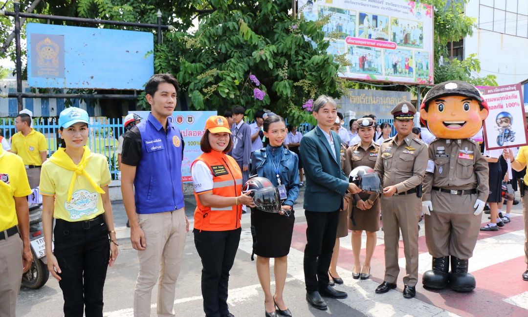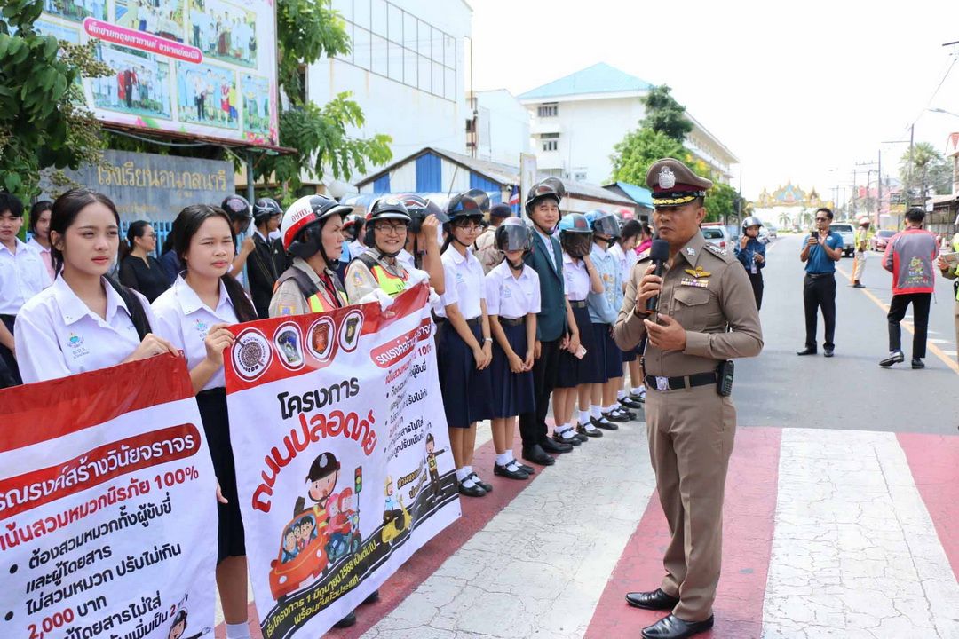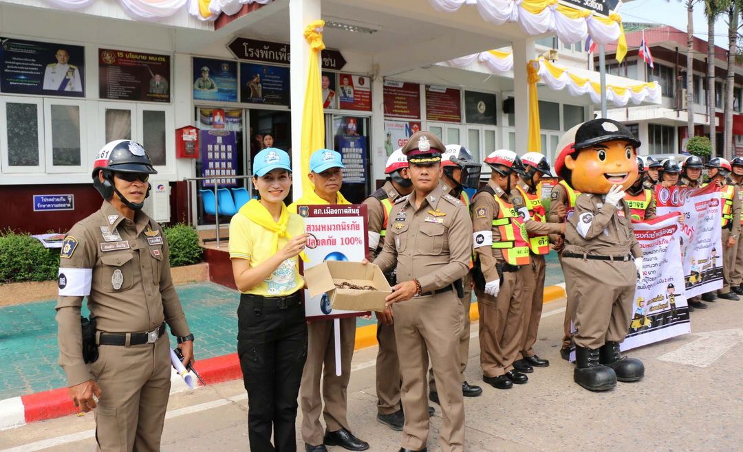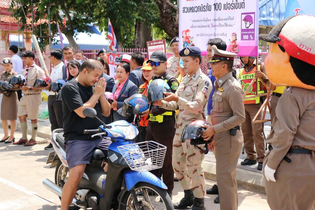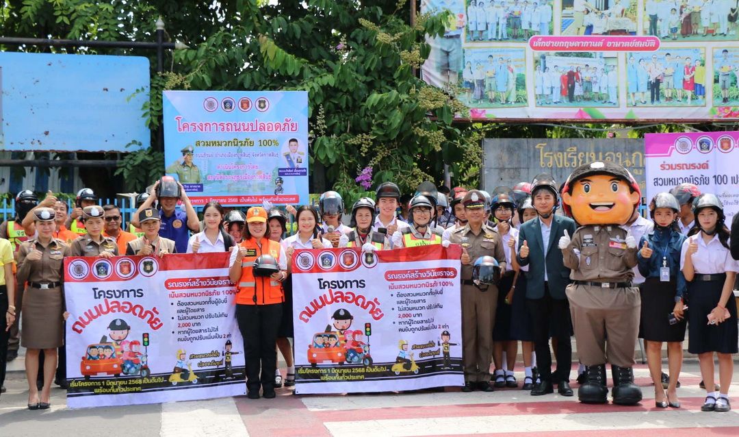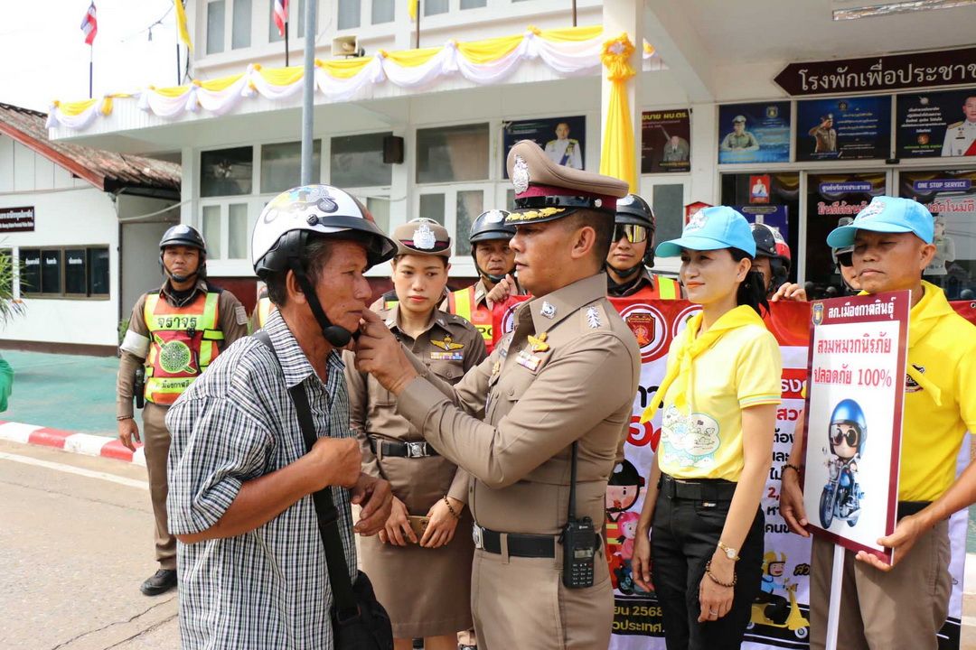 ตามนโยบายของสำนักงานตำรวจแห่งชาติที่จัดทำ “โครงการถนนปลอดภัย” บังคับใช้กฎหมายจราจรเข้มข้น เพื่อป้องกันอุบัติเหตุและสร้างความปลอดภัยในการสัญจร พร้อมแจกหมวกนิรภัยให้กับผู้ขับขี่รถจักรยานยนต์ และนักเรียน รวมทั้งเดินรณรงค์ให้ประชาชนสวมหมวกนิรภัย เพื่อป้องกันอันตรายในขณะขับขี่