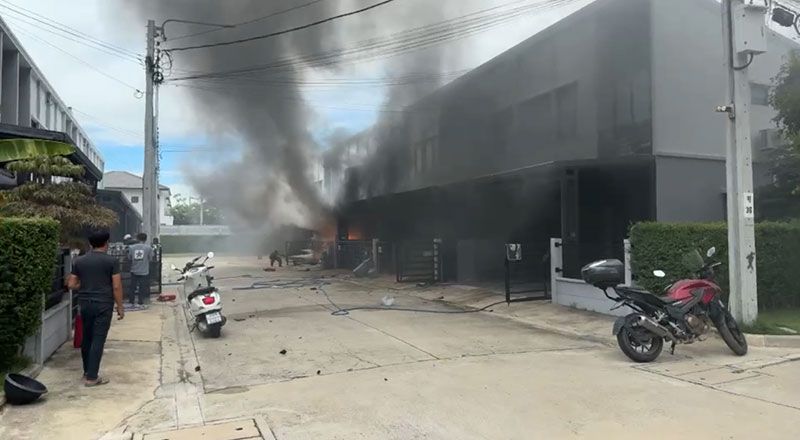 ที่เกิดเหตุเป็นบ้านทาวน์โฮม 2 ชั้น พบว่าเพลิงกำลังลุกไหม้รถยนต์ 1 คัน และรถจักรยานยนต์ไฟฟ้า 1 คัน ที่จอดอยู่โรงจอดภายในบ้านเลขที่ 119/267 ก่อนลุกลามไหม้เข้าตัวบ้าน และบ้านที่อยู่ติดกันด้านซ้าย 1 หลังและด้านขาว 2 หลัง ได้รับความเสียหายจากเปลวเพลิง รวม 4 หลัง โดยเจ้าหน้าที่ดับเพลิงใช้น้ำและสารเคมีสำหรับดับเพลิงระดมฉีดน้ำ นานกว่า 30 นาที สามารถดับไฟได้ ส่วนพ.ต.ท.หญิง มัญชุภา เจ้าของบ้านได้อุ้มแมวที่ได้รับบาดเจ็บ มาขอความช่วยเหลือเจ้าหน้าที่กู้ภัยให้ช่วยพาแมวไปส่ง ร.พ.สัตว์ใกล้เคียง