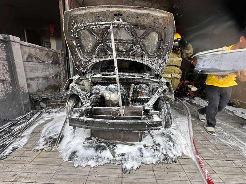 เจ้าหน้าที่ดับเพลิง กล่าวว่า ได้รับแจ้งเพลิงไหม้บ้าน ได้นำรถน้ำเข้าดับไฟที่กำลังลุกไหม้รถยนต์ที่จอดอยู่หน้าบ้านแต่ยังไม่แน่ชัดว่าต้นเพลิงเกิดจากที่รถหรือจุดใด ต้องรอตำรวจเขัามาตรวจสอบก่อน และมีผู้บาดเจ็บเป็นเจ้าของบ้านผู้ชายถูกน้ำร้อนลวก และมีแมวเสียชีวิต 1 ตัว และสำลักควันสาหัสอีก 1 ตัว ได้นำส่งรักษาโรงพยาบาลสัตว์