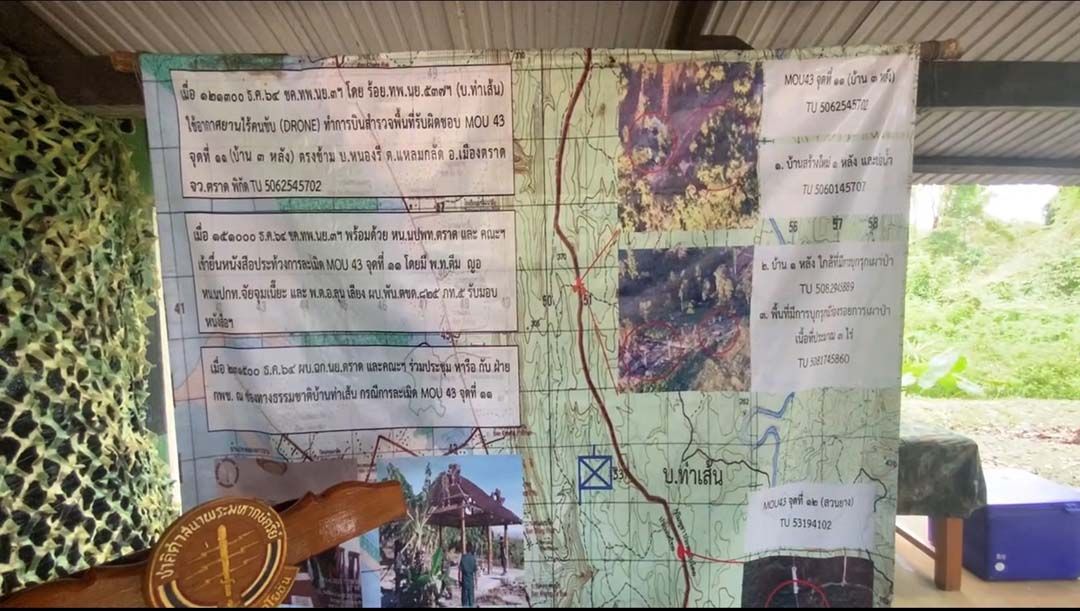 เมื่อ 25 ธ.ค.2564 ผบ.ฉก.นย.ตราด และคณะฯ ร่วมประชุม หารือ กับ ฝ่ายกัมพูชา ณ ช่องทางธรรมชาติบ้านท่าเส้น กรณีการละเมิด MOU 43จุดที่ 11