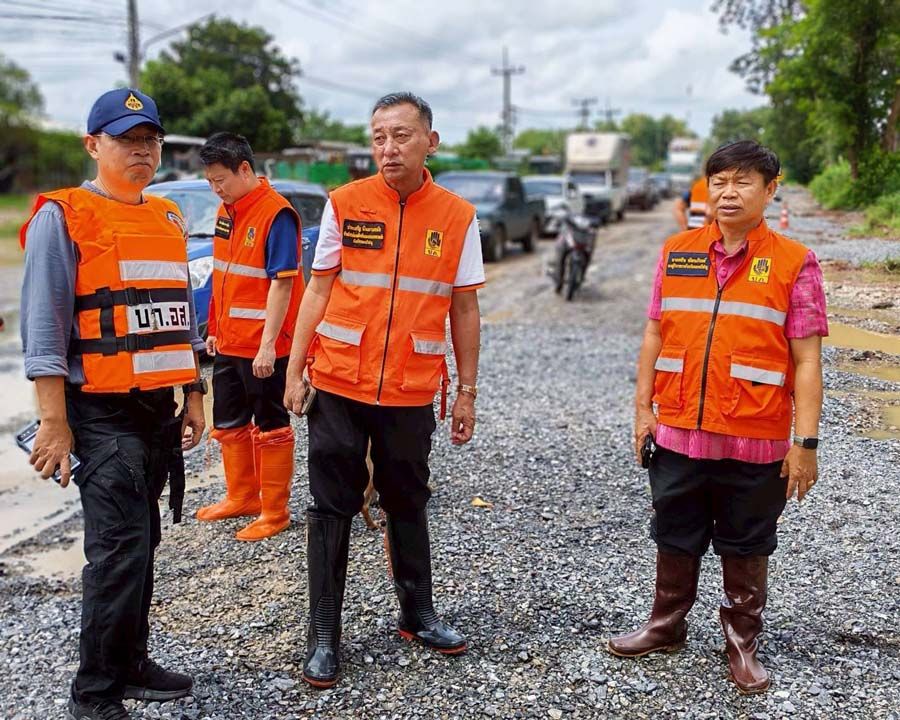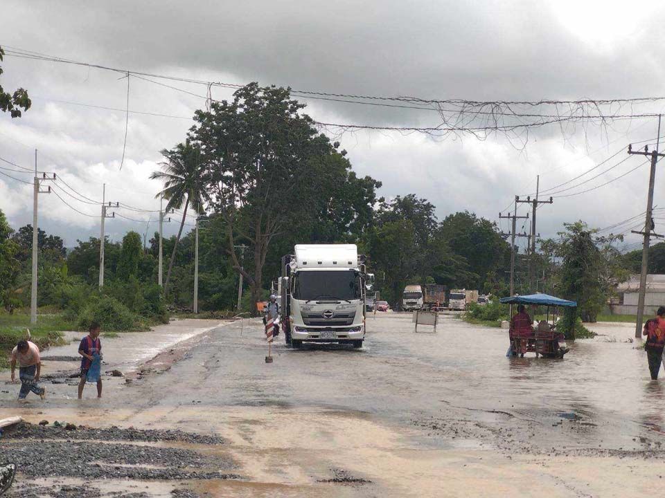 นอกจากนี้คณะยังได้เข้าตรวจสอบ บริเวณพื้นที่ก่อสร้างถนนเส้นทางระหว่างตำบลกุดดู่-อำเภอโนนสัง ซึ่งยังก่อสร้างไม่แล้วเสร็จ พบว่าผิวถนนที่ยังไม่แข็งแรง ถูกกระแสน้ำที่ท่วมสูงและไหลเชี่ยวกัดเซาะ จนได้รับความเสียหาย ประกอบกับมีรถบรรทุกหนัก สัญจรผ่านเป็นจำนวนมาก อาจก่อให้เกิดอันตรายได้ เพื่อความปลอดภัยในชีวิตและทรัพย์สินของประชาชน นายศศิน พัฒนภิรมย์ รองผู้ว่าราชการจังหวัดหนองบัวลำภู จึงได้ประสานงานไปยังหน่วยงานทางหลวงจังหวัดหนองบัวลำภู เพื่อดำเนินการปิดการสัญจรบนเส้นทางดังกล่าวเป็นการชั่วคราว และขอให้ประชาชนหันไปใช้เส้นทางสัญจรอื่น เพื่อหลีกเลี่ยงความเสี่ยงที่อาจจะเกิดขึ้น