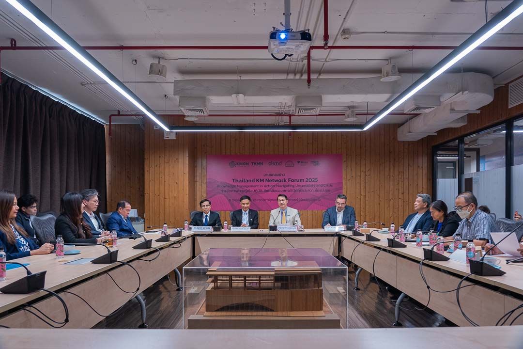 “การจัดงาน Thailand KM Network Forum 2025 ครั้งนี้ จึงเป็นเวทีแห่งความก้าวหน้าของการจัดการความรู้ ที่รวบรวมเครือข่ายนักจัดการความรู้องค์กร จากหน่วยงานภาครัฐและเอกชน ทั้งในประเทศ และต่างประเทศมาเปิดพื้นที่แลกเปลี่ยนองค์ความรู้ และร่วมสร้างการรับรู้และความสนใจเรื่องการจัดการความรู้ในองค์กร โดยหนึ่งในไฮไลต์สำคัญคือ การเสวนา Knowledge Management in Action : Navigating Uncertainty and Crisis “การจัดการความรู้เชิงปฏิบัติ : ขับเคลื่อนองค์กรฝ่าวิกฤตและความไม่แน่นอน ผู้เข้าร่วมประกอบไปด้วย ดร.ทวารัฐ สูตะบุตร ผู้อำนวยการ OKMD ดร.อัมพร แสงมณี กรรมการผู้จัดการ TRIS รศ.ดร.บวร ปภัสราทร ผู้อำนวยการ KNIT และ ดร.จุลเทพ เสนียวงศ์ ณ อยุธยา อาจารย์และนักวิจัย จาก IKI-SEA มหาวิทยาลัยกรุงเทพ” ดร.ทวารัฐ กล่าว