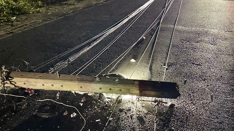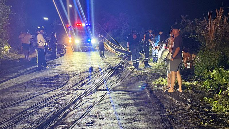 ที่เกิดเหตุพบรถเก๋งยี่ห้อ ฮอนด้าแจส สีบรอนซ์เงิน ทะเบียนสุรินทร์ โดยมีนายเชษฐา เป็นผู้ขับขี่ ชนเสาไฟฟ้าโดยเสาไฟฟ้าได้ล้มอยู่บนถนนจำนวน 2 ต้น พร้อมกับมีสายไฟระโยงระยาง รถไม่สามารถขับผ่านได้ จากการตรวจสอบสายไฟดังกล่าวที่ล้มระเนระนาดอยู่บนถนนมีกระแสไฟ และมีหลอดไฟสว่างอยู่คาต้น ซึ่งคนขับอยู่ในอาการสะลึมสะลืออยู่ในอาการพูดจาสับสนคล้ายกับคนเมา โดยเจ้าตัวคนขับรถคันนี้ได้รับบาดเจ็บมีแผลถลอกตามร่างกาย เจ้าหน้าที่ตำรวจได้เก็บหลักฐานเพื่อหาสาเหตุของการเกิดอุบัติเหตุในครั้งนี้ต่อไป