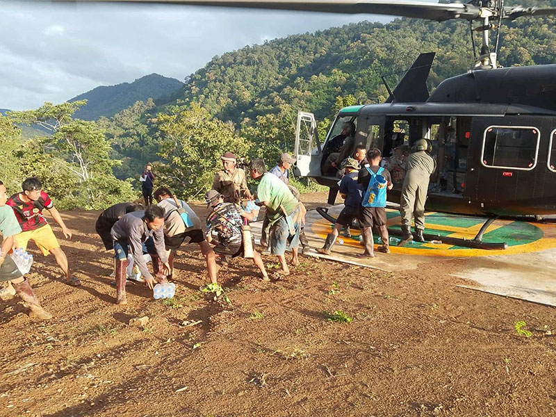 บ้านห้วยแห้ง ต.แม่คง อ.แม่สะเรียง จ.แม่ฮ่องสอน เส้นทางถูกตัดขาด ต้องใช้เฮลิคอปเตอร์ลำเลียงสิ่งของไปช่วยเหลือราษฎรขณะที่เด็กนักเรียนได้รับผลกระทบขาดแคลนเสื้อผ้าชุดนักเรียนและอุปกรณ์การเรียน ขอรับบริจาคช่วยเหลือเด็กเป็นการด่วน