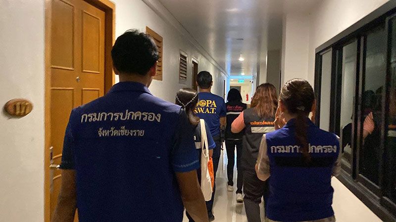 ได้สั่งการให้ ฝ่ายปกครองร่วม ตำรวจ บ้านพักเด็กและครอบครัวจังหวัดเชียงรายพัฒนาสังคมและความมั่นคงของมนุษย์จังหวัดเชียงราย ตม.จว.เชียงราย และหน่วยงานที่เกี่ยวข้อง นำโดยนายกองรบ กระทุ่มนัด ป้องกันจังหวัดเชียงราย ผู้ช่วยป้องกันจังหวัดเชียงราย นายรณรงค์ พงษ์สวัสดิ์ ผู้บังคับกองร้อยกองอาสารักษาดินแดน กองร้อยอาสารักษาดินแดนจังหวัดเชียงรายที่ 1 สมาชิกกองอาสารักษาดินแดน กองร้อยอาสารักษาดินแดนจังหวัดเชียงรายที่ 1 นายวินัย เก่งสุวรรณ พัฒนาสังคมและความมั่นคงของมนุษย์จังหวัดเชียงราย นางสาวปฏิญญา คงอาวุธ หัวหน้าบ้านพักเด็กและครอบครัวจังหวัดเชียงราย ร.ต.อ.พิทักษ์พงศ์ หมั่นงาน เจ้าหน้าที่ ตม.จว.เชียงรายพ.ต.ท.พันธุ์ระวี วงศ์ชัย สว.กก.สส.ฯ ตำรวจภูธรจังหวัดเชียงราย และเจ้าหน้าที่ตำรวจสภ.เมืองเชียงราย เข้าดำเนินการตรวจสอบ
