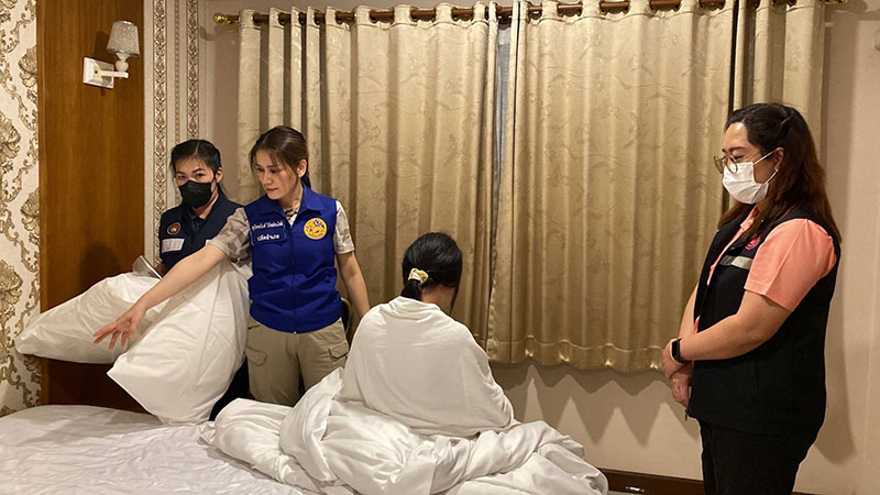 เจ้าหน้าที่จึงได้วางแผนเข้าตรวจสอบ จับกุม โดยส่งสายลับเข้าไปเพื่อพิสูจน์ความผิดเมื่อสายลับพิสูจน์ความผิดเรียบร้อยแล้ว จึงได้แจ้งชุดจับกุมเข้าตรวจสอบ โดยสามารถช่วยเหลือบุคคลผู้ถูกค้าประเวณีได้จำนวน 3 คน ณ โรงแรมแห่งหนึ่งในพื้นที่อำเภอเมืองเชียงราย (ปกปิดนามโรงแรมเนื่องจากมิได้มีส่วนเกี่ยวข้องกับการกระทำความผิด) ซึ่งจากการตรวจสอบผู้ถูกค้าประเวณีเบื้องต้น ทราบว่ามี 1 คน อายุ 15 ปีสัญชาติเมียนมา