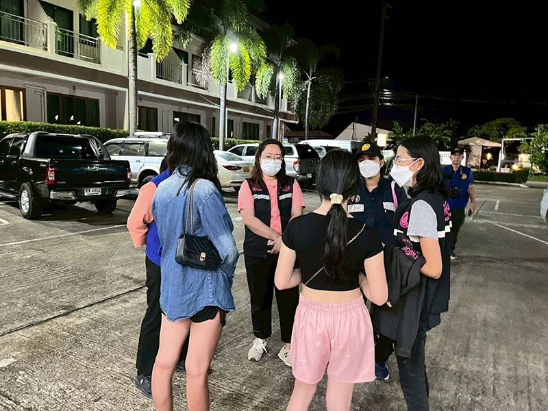 จากการสอบถามเบื้องต้นทราบว่ามาค้าประเวณีเพื่อหาเงินซื้อข้าวกินและส่งกลับบ้านในส่วนของบุคคลอื่นอยู่ระหว่างตรวจสอบอายุต่อไป และสามารถจับกุมบุคคลผู้เป็นธุรจัดหาได้จำนวน 1 คน เจ้าหน้าที่จึงแจ้งข้อหาในเบื้องต้น ในข้อหาเป็นธุระจัดหา เพื่อให้บุคคลนั้นกระทําการค้าประเวณี , ยุยงส่งเสริมให้เด็กประพฤติตนไม่เหมาะสม ซึ่งเจ้าหน้าที่จะได้ประสานสหวิชาชีพเพื่อทำการคัดแยกเหยื่อผู้เสียหายจากการค้ามนุษย์ ต่อไป.