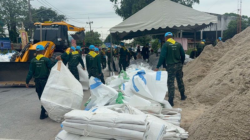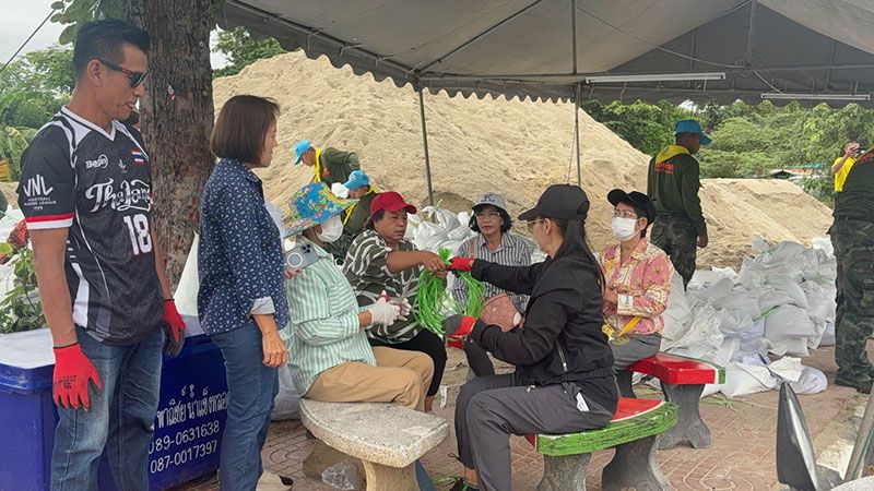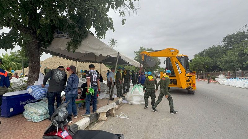 ตอนนี้เร่งระดมกำลังชาวบ้านเจ้าหน้าที่เทศบาลและเจ้าหน้าที่ทหารเร่งทำการกระสอบทรายลงบิ๊กแบ็กและจะทำการนำไปวางที่จุดน้ำลอดไต้ประตู และย้ายเครื่องสูบน้ำนำรถเครนยกกระสอบบิ๊แบ็กวางลงในคลองบริเวณประตูระบายน้ำเพื่อเพิ่มความแข็งแรงเพื่อป้องกันเขตเศรษฐกิจการค้าศูนย์ราชการอย่างเร่งด่วน.