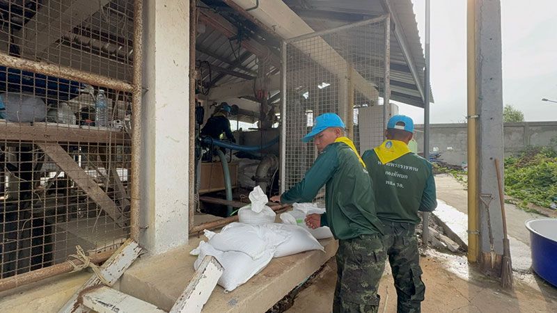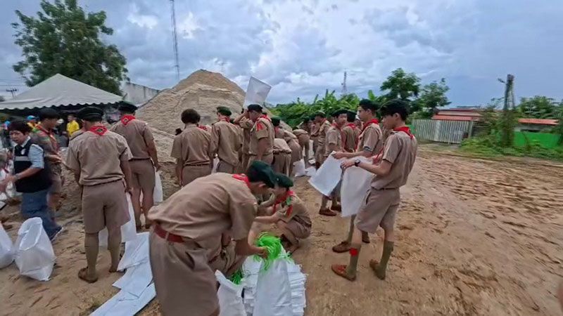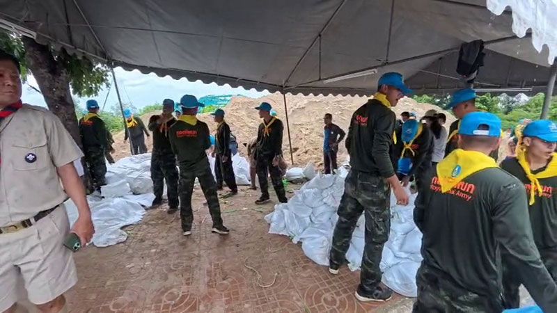 ด้านเจ้าหน้าที่ทหารได้เร่งวางกระสอบทรายในจุดรั่วซึมบริเวณบ่อเต่า วัดต้นสน ซึ่งที่ผ่านมาเป็นจุดวิกฤติที่น้ำไหลทะลักมาแล้ว ด้านเทศบาลเมืองอ่างทองรวมพลังแรงใจนักเรียนนักศึกษา พ่อค้าประชาชน เจ้าหน้าที่ทหาร เจ้าหน้าที่เทศบาล ช่วยกันกรอกกระทรายนำไปวางป้องกันจุดเสี่ยงเขตเศรษฐกิจและศูนย์ราชการตามจุดรั่วซึมริมเขื่อน