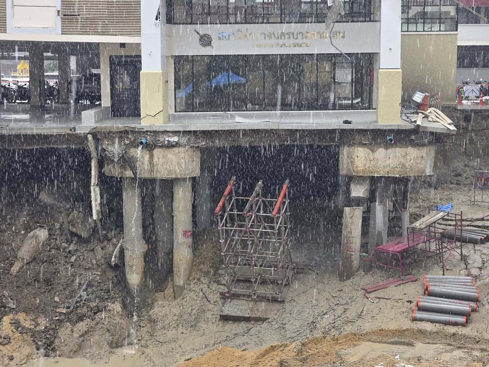 ผู้ว่าฯ ชัชชาติ กล่าวว่า มีการสไลด์ของดินและทำให้เสาเข็ม สน.สามเสน หักเพิ่ม คือเสาต้นที่ 5 ซึ่งเป็นเสาหลักในการรับน้ำหนักของ สน. ชำรุด และความเสียหายได้ขยายตัวต่อเนื่องไปยังเสาต้นที่ 3 ทำให้มีกำลังรับน้ำหนักได้น้อยลง แม้ยังไม่ถึงขั้นทำให้อาคารพังถล่ม แต่ทำให้เห็นว่ามีความเสียหายเพิ่มขึ้นอย่างต่อเนื่อง เพื่อความปลอดภัย และคนที่ลงไปทำงานจะได้ไม่กังวลทั้งเรื่องตึกถล่มและดินสไลด์ หากเรากำจัดปัญหาด้านบนไปก่อน เชื่อว่าการทำงานจะปลอดภัยและมั่นใจมากขึ้น ทั้งนี้ เสาเข็มที่หัก เกิดจากการสไลด์ของดินไม่ได้เกิดจากทำงานที่ผ่านมา ซึ่งเป็นการทำให้มั่นคงมากขึ้นด้วย ไม่ได้ทำให้เกิดความกระทบกระเทือน หรือเสียหายเพิ่มขึ้น